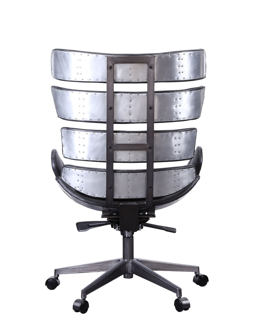 Megan Office Chair in Vintage Black Top Grain Leather & Aluminum