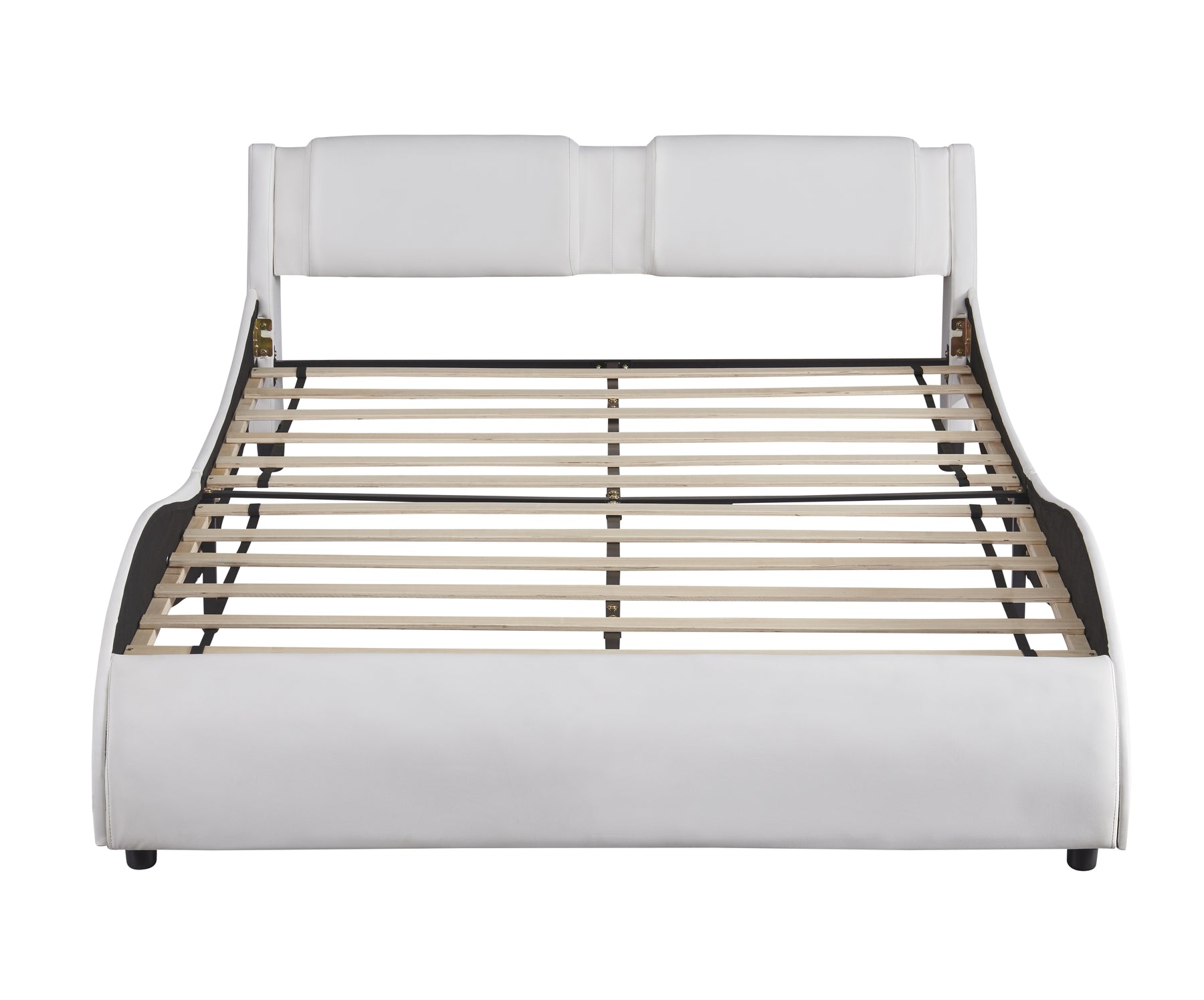 - {Impression & Beautiful}Upholstered Faux Leather Platform Bed with LED Light Headboard, this unique bed will be the focus in bedroom when friends coming by.This bed brings rich rural life style to bedroom, not only offers great fun for your bedtime but also adds highlights to bedroom.