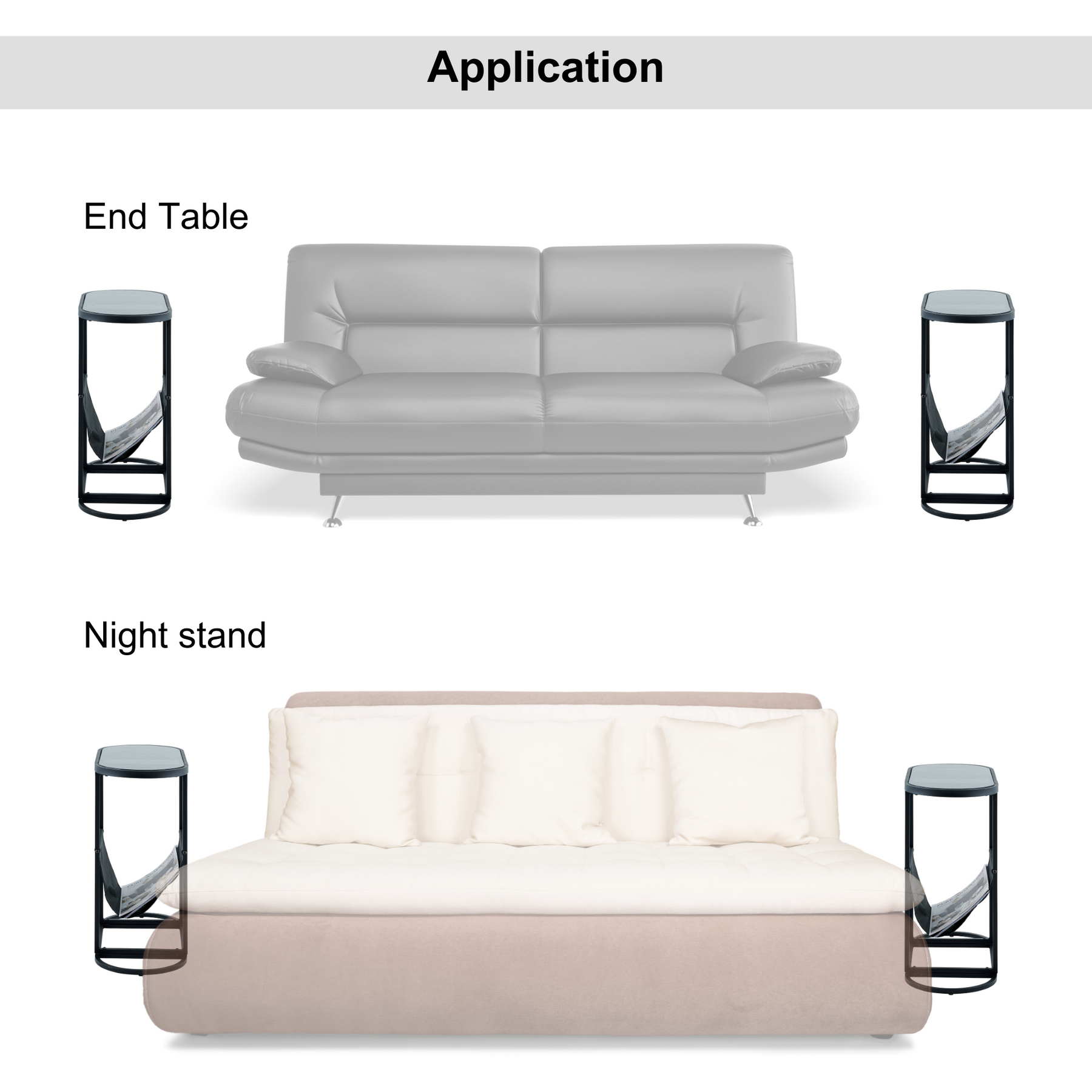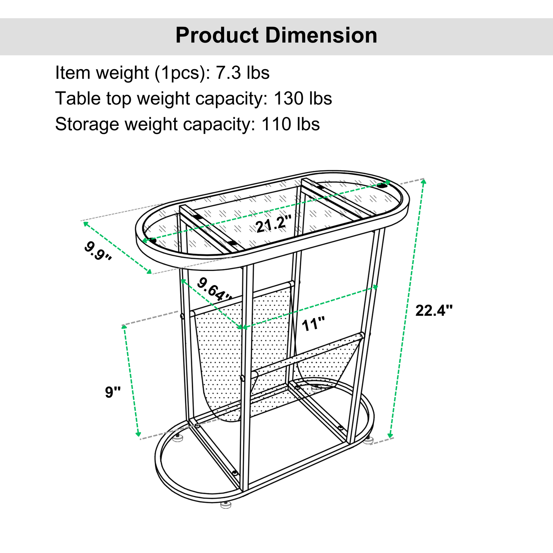 - Lightweight Sidetable - With item weight of about 7.3 lbs you can easily move it around your home. Lightweight but with high bearing capacity of glass table top up to 130 lbs. A magazine organizer is designed in the middle, a convenient and modern storage area with high weight capacity upto 110 lbs.