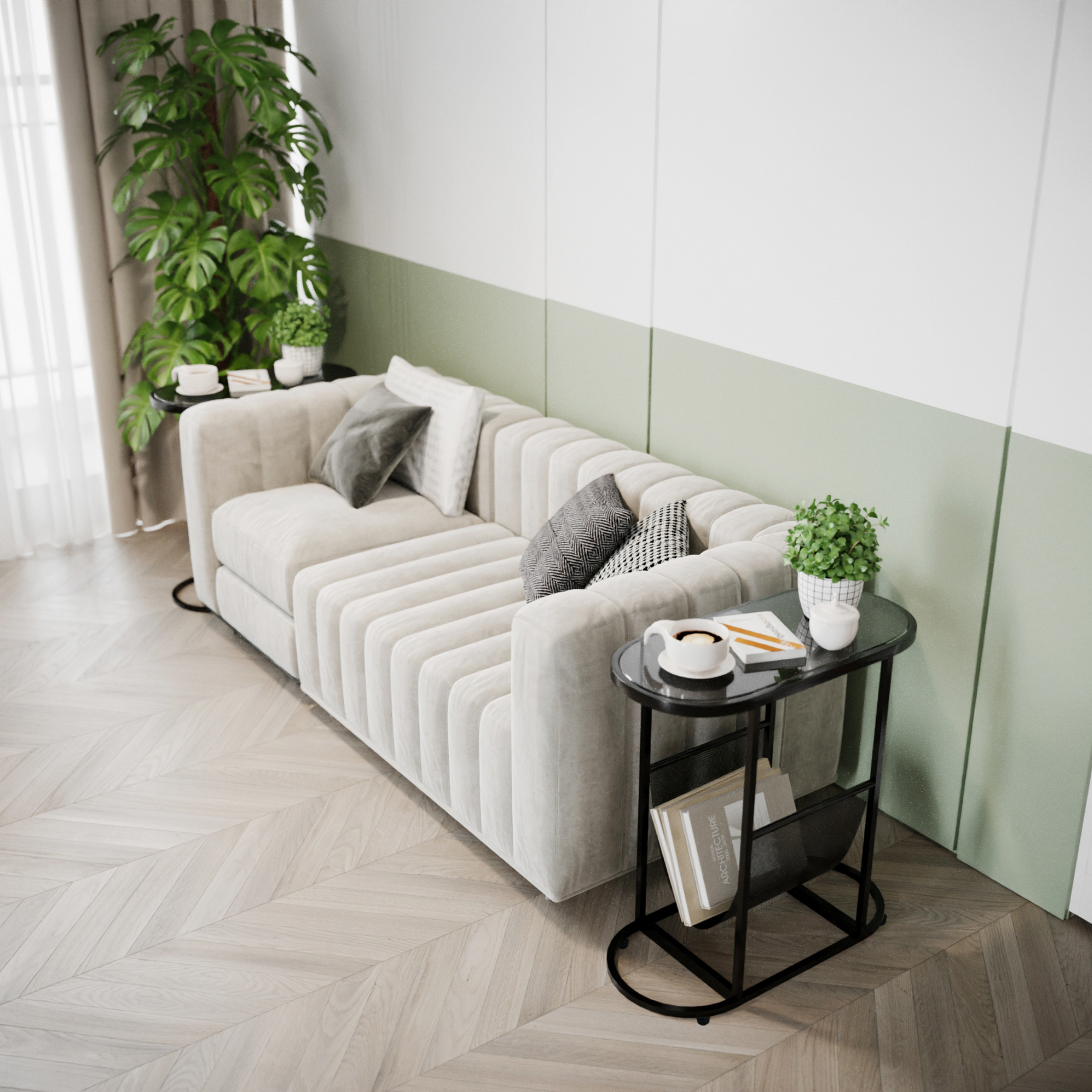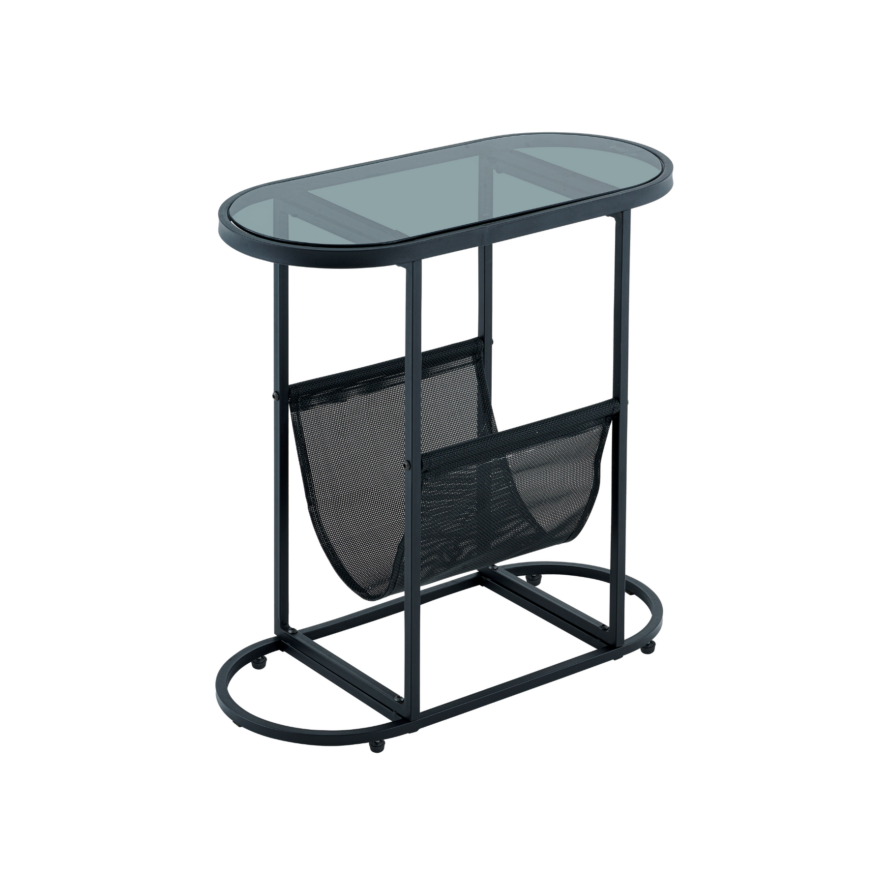 Attracted at first sight by its simplicity and classicism, the oval side table brings pure beauty to your home. With a compact design of 21.2" x 9.9" x 22.4", this storage end table is suitable for most small spaces in your home from the coffee table next to the sofa, the entrance area, the night stand in the bedroom to next to the armchair on the porch, all of them blend together to create a convenient and cozy space. The oval table top is made from tempered glass combined with a powder-coated steel frame for sturdiness and durability. A magazine organizer is designed in the middle, a convenient and modern storage area for this coffee stand table.