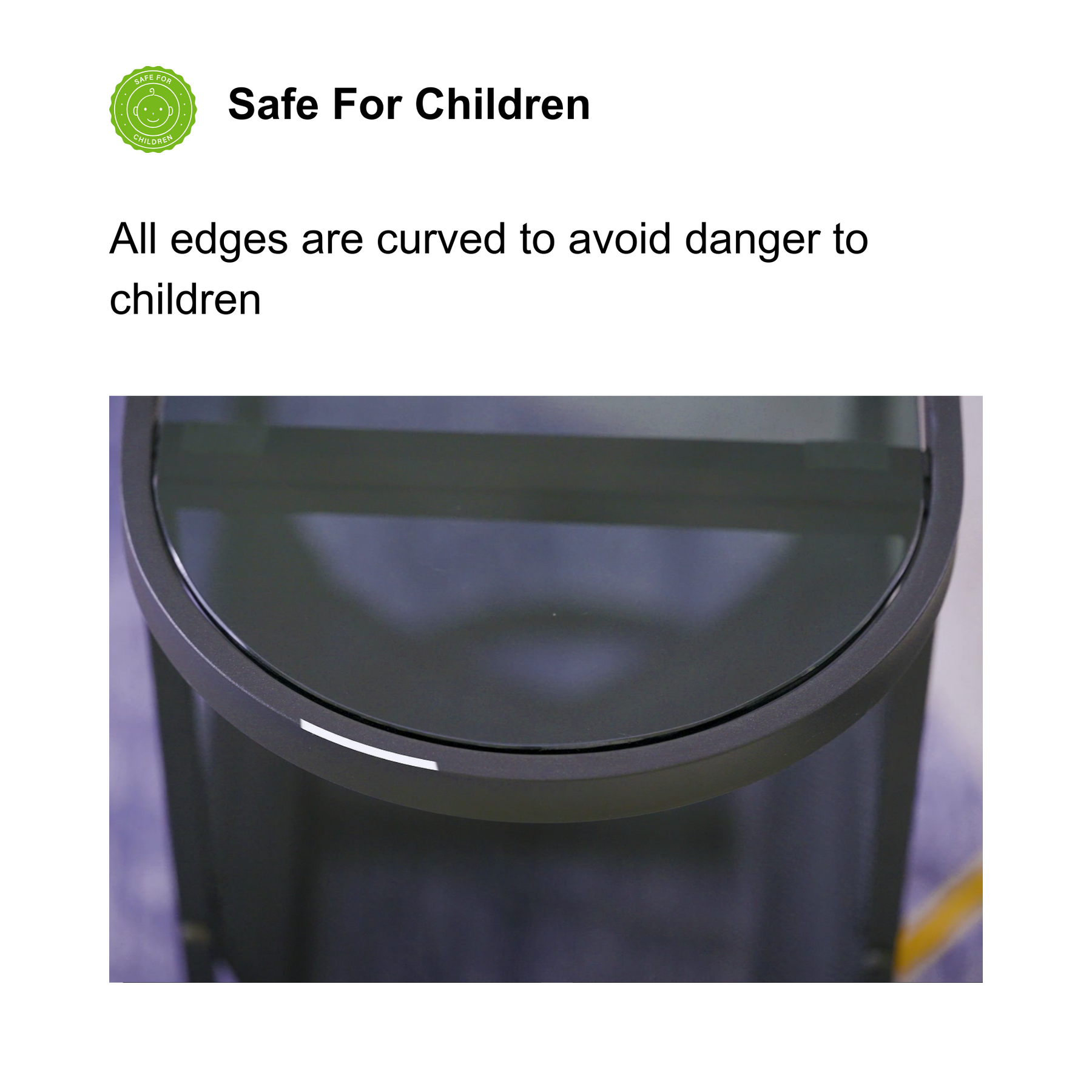 - Premium Materials - made from tempered glass combined with a powder-coated steel frame for sturdiness and durability. Oval table top with no sharp edges, which are curved to avoid danger to children.