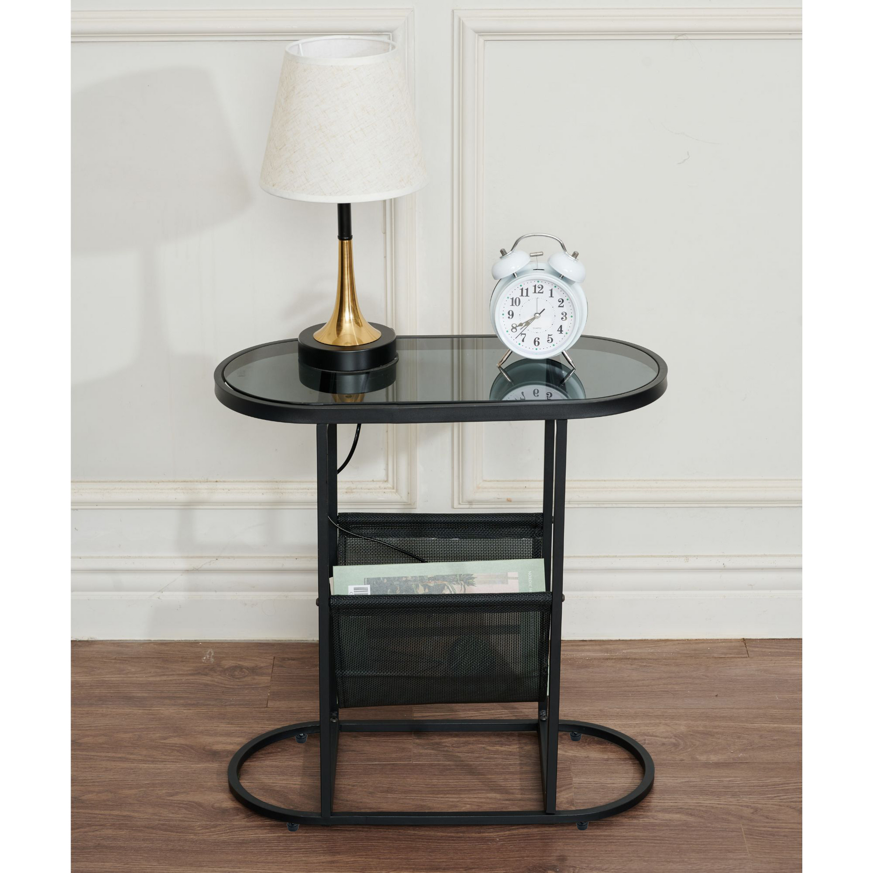 Name | Glass Oval Small Side Tables Living Room Small Space With Magazines Organizer Storage Space (Set of 2) |