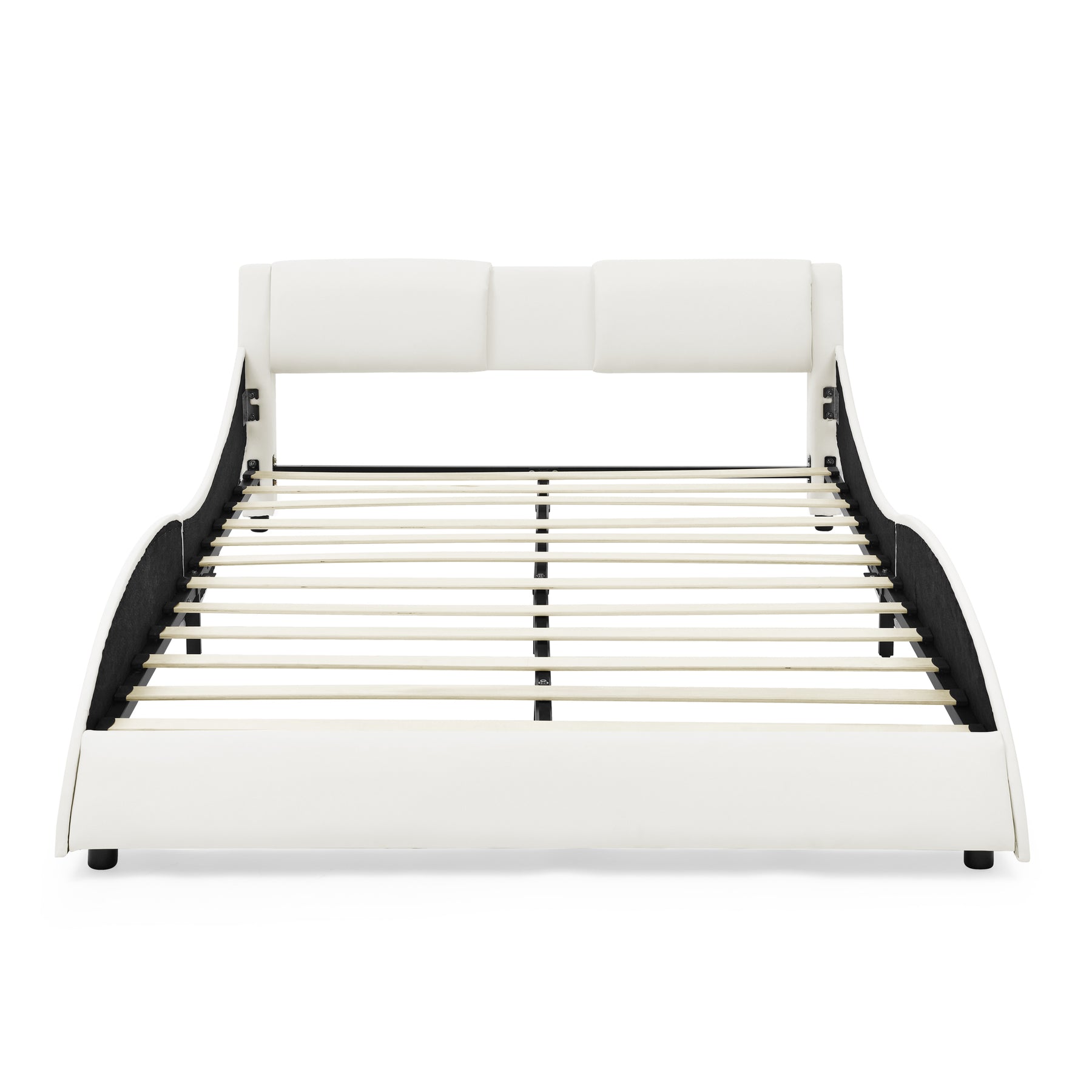 - 【Unique Wave Like Curve Design】A striking black deluxe faux leather upholstery and padded headboard with vertical stitching, this bed is the perfect way to upgrade your bedroom's look.Soft padded upholstered headboard makes it more comfortable to rely on. Leaning on the bed to read or watch videos, relax, and enjoy the ultimate.