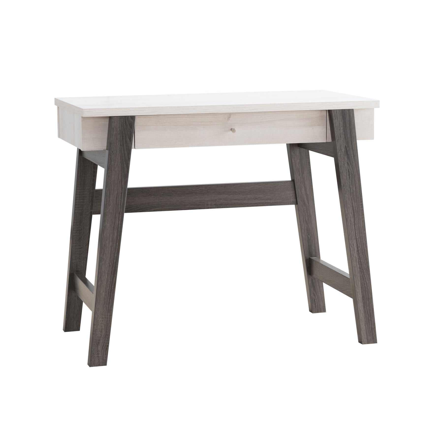 Writing Desk, Home Office Desk with Drawer- White & Distressed Grey