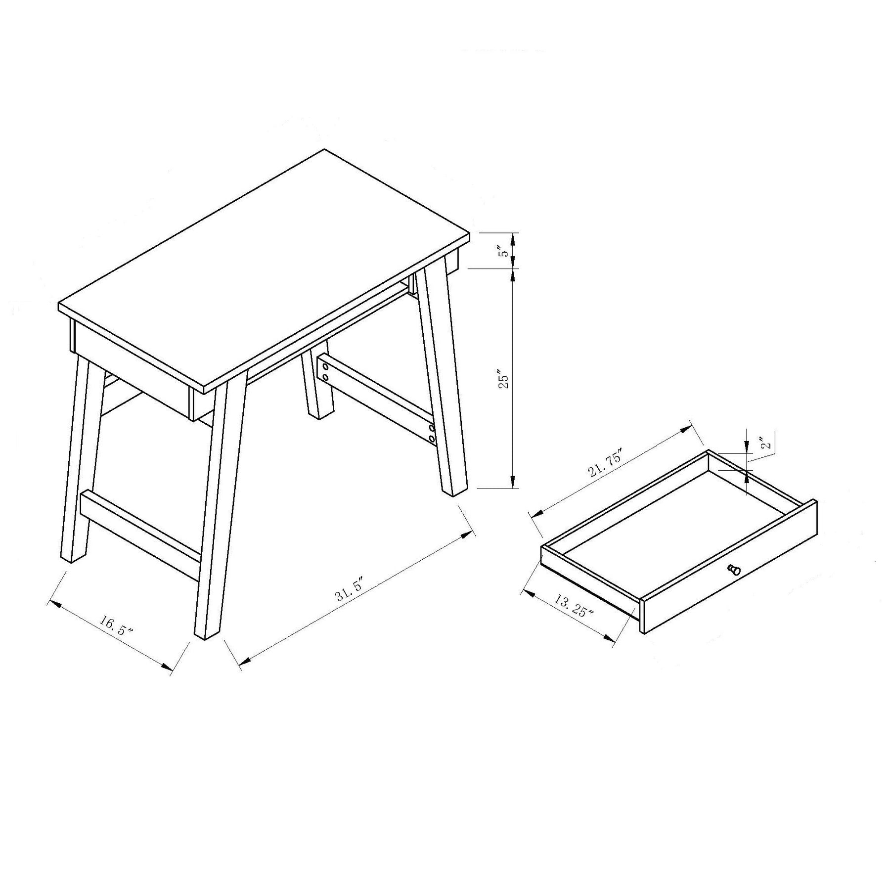 This desk features one drawer for your storage needs. Finish your home office with this uniquely designed writing desk. The slanted legs allow for easy placement.