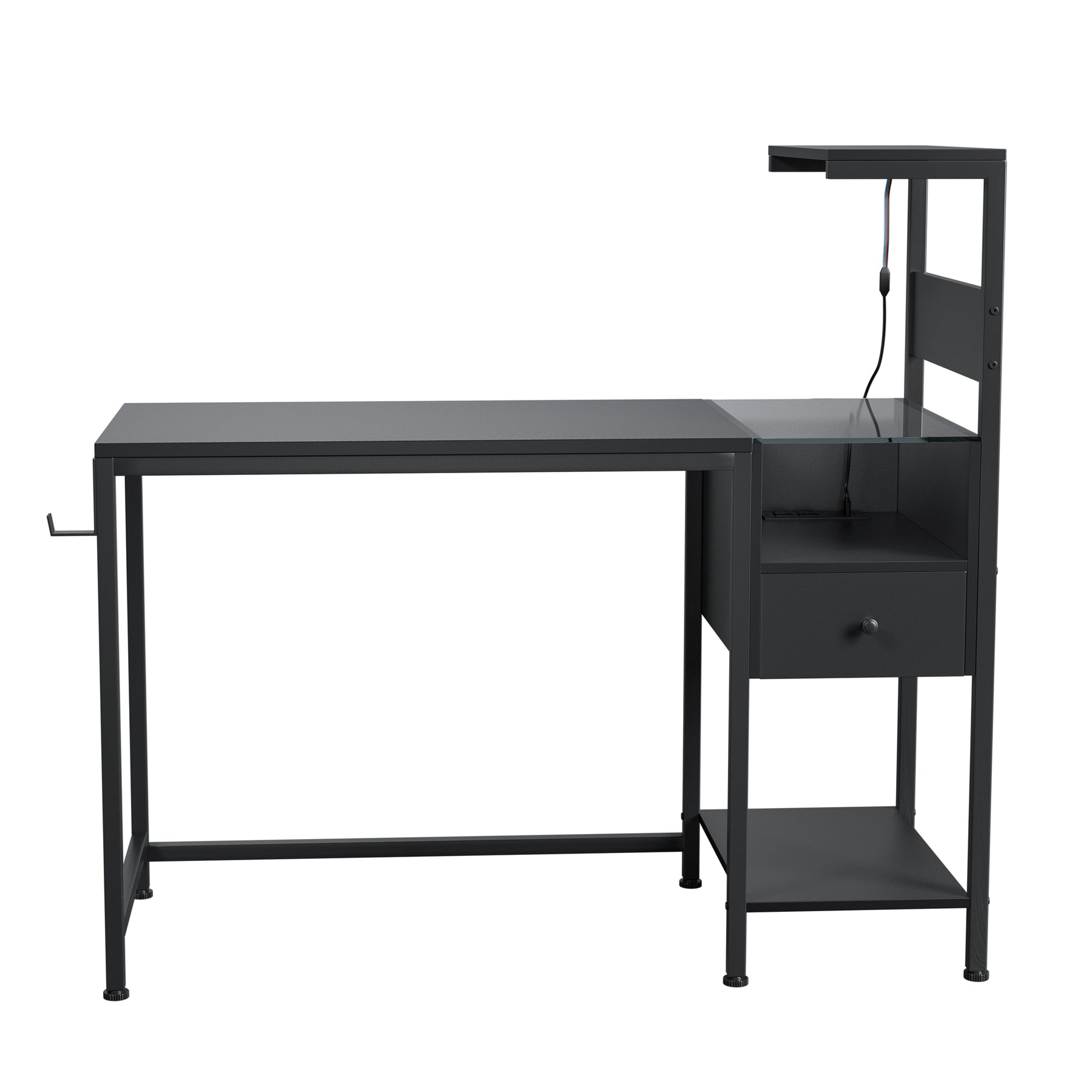 The desk is a reversible home office desk with 4-tier shelves and one drawer that are easy to fit snugly into a corner to maximize your space, and the shelves can be placed as far to the left or right as your preference, perfect for small spaces for gaming, working and studying.