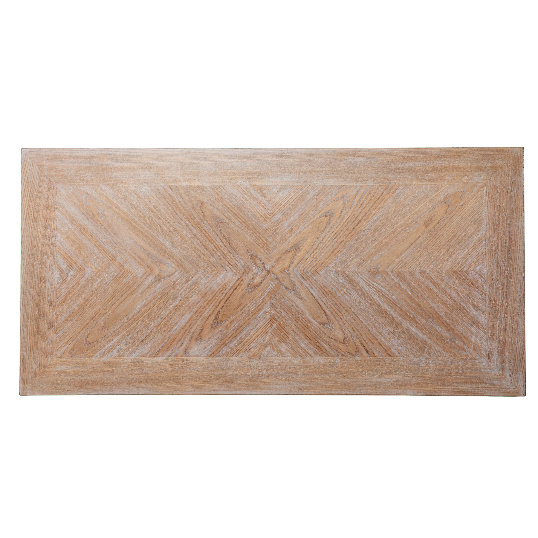 - The creamy white finish highlights the unique, trellis styled legs, while the natural desktop provides ample room to write or type