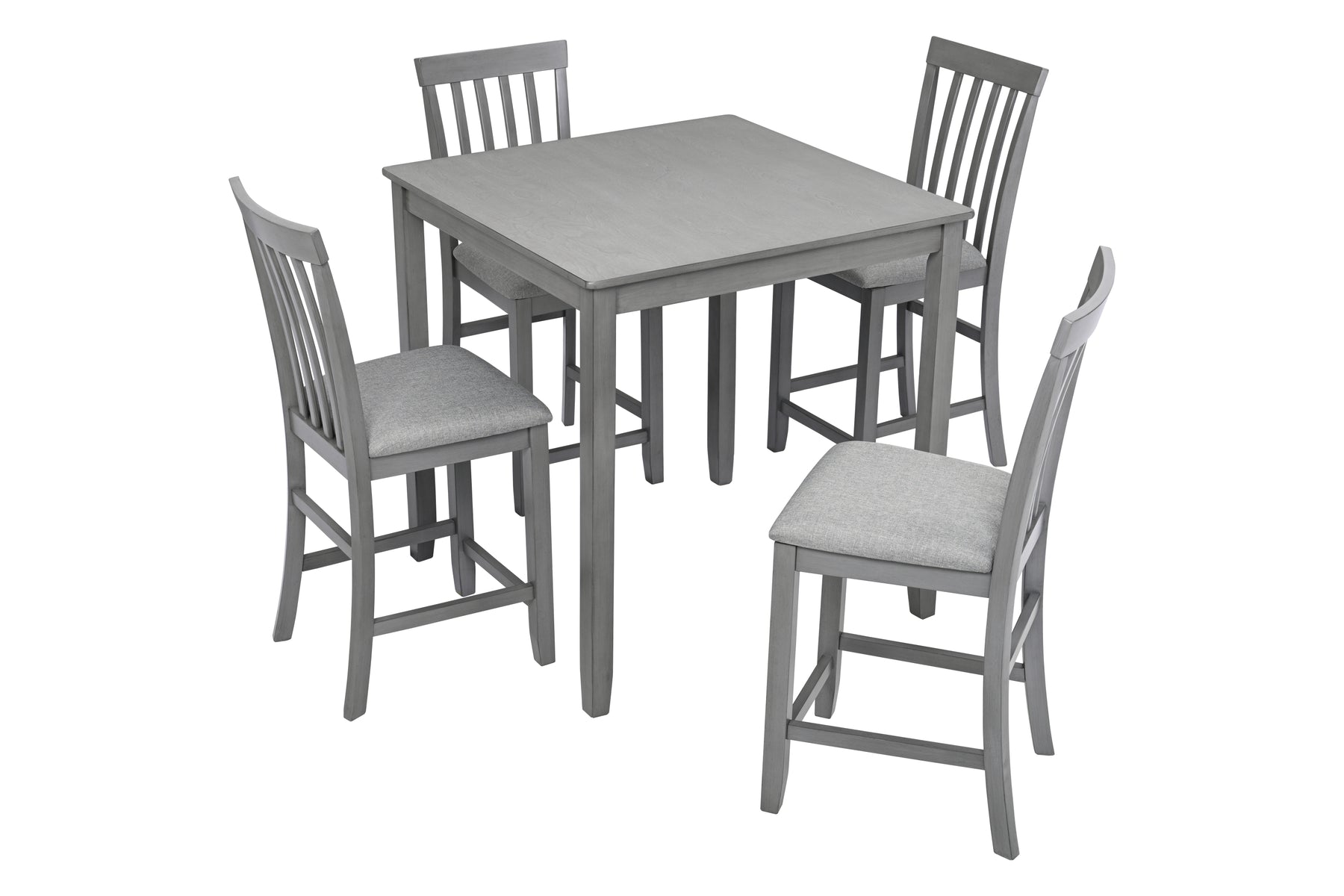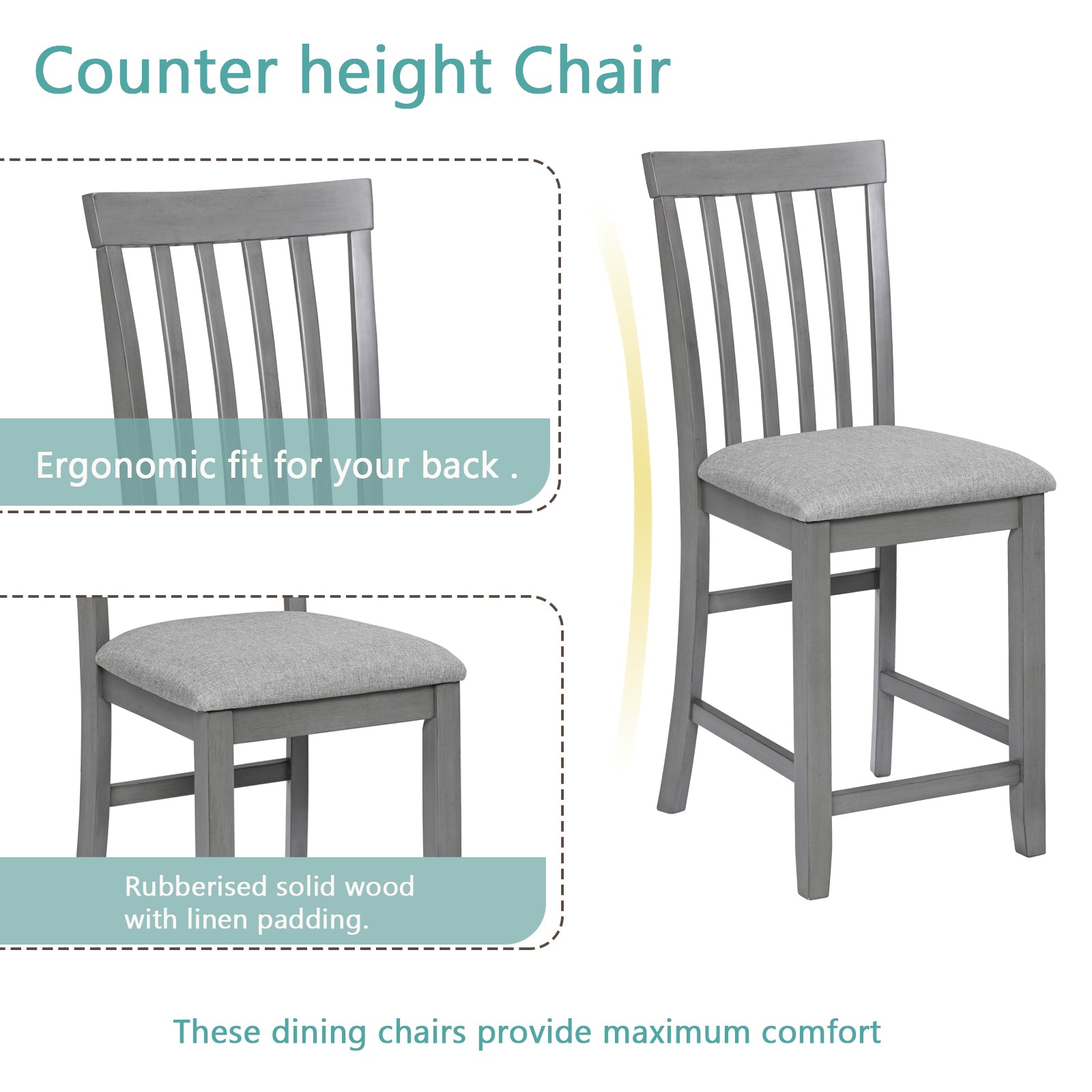 - 【5-piece Counter Height Dining Table Set】This dining set comes with a table and four chairs, which occupy only a small area in your house to fulfill the everyday dining requirements of the whole family. This upmarket dining set has a small build with ample space for legs. After dinner, shift the chairs beneath the table to enhance options in a restricted area, perfect for families with limited space at home. The surface of the table is smooth and waterproof, easy to clean with a simple wipe.