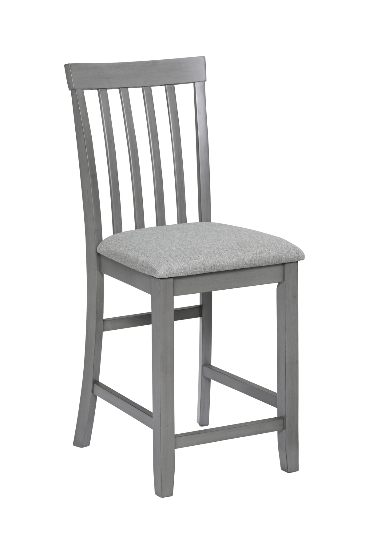 This 5 piece solid wood counter height dining set consists of a square table and 4 upholstered chairs. The table top is spacious and square and the slender tapered legs are both sturdy and flexible. With its sleek contemporary style and clean lines, this dining set is ideal for any dining room. The water and oil resistant high quality MDF and birch veneer makes it easy to clean with a simple wipe. The frame and legs are made from durable, high quality solid wood. The dining chairs feature a stylish vertical slatted back design, linen seat cushions and tapered legs for a relaxed dining experience. This versatile set is ideal for dining rooms, kitchens and dining areas!
