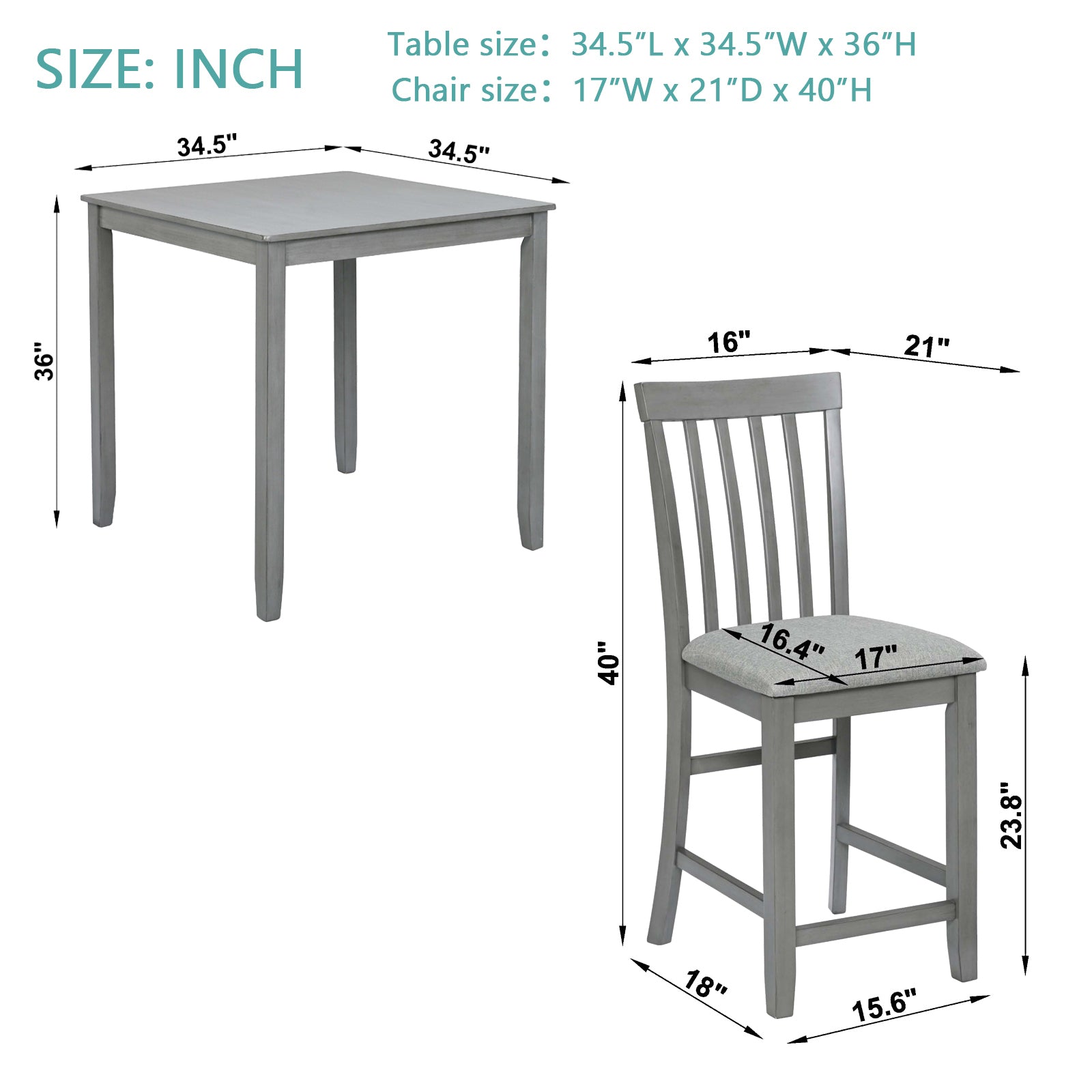 Product Dimensions | Table:34.5"L*34.5"W*36"H Chair:17"W*21"D*40"H,seat depth:16.4" seat height:23.8" |