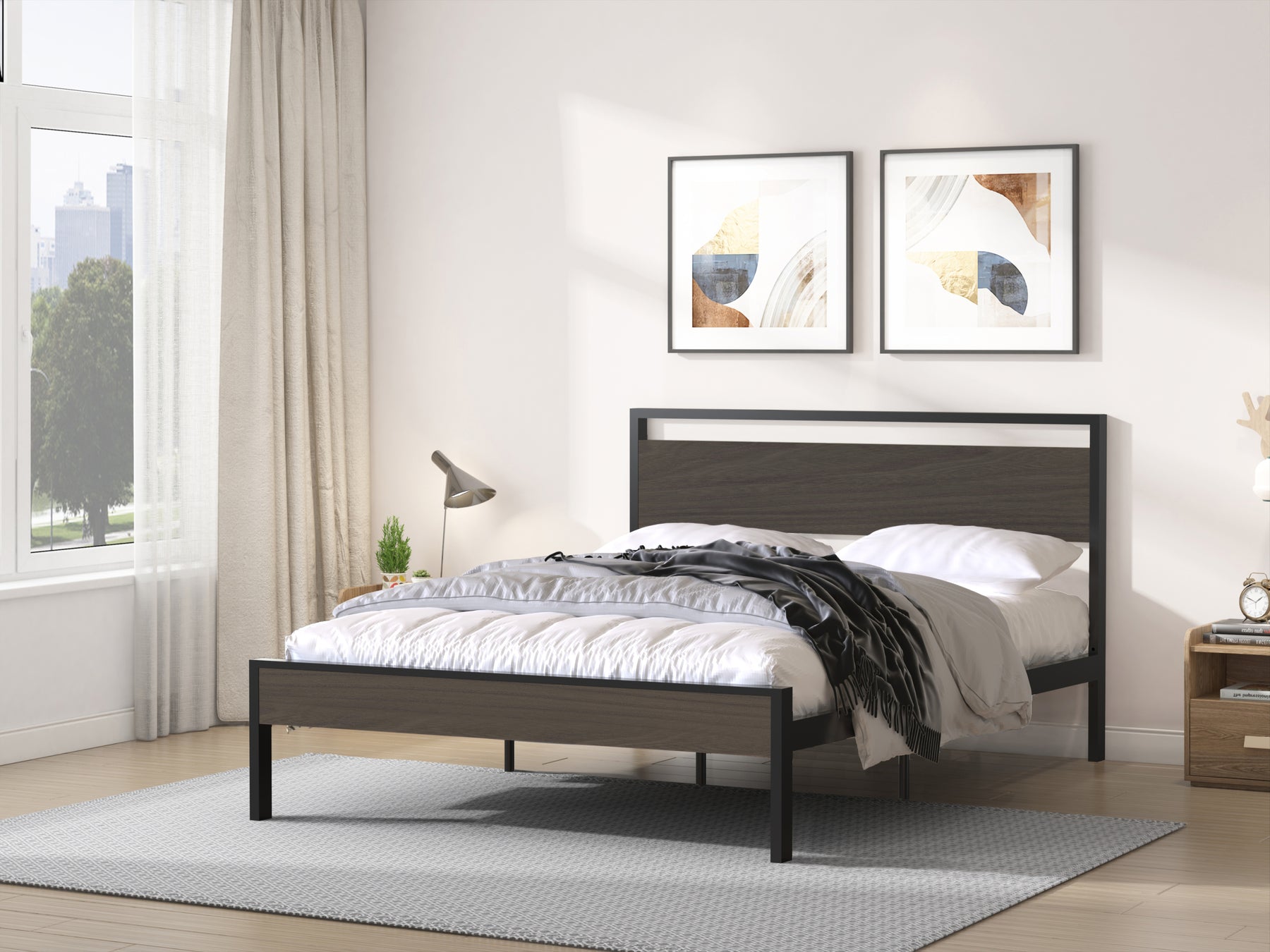 - [Stylish & Simple Design]: The combination of rustic style headboard and footboard with coated satin gloss metal slats creates a strong industrial / rustic flair, adding an industrial and unique touch to your room. The headboard consists of a classic color wood board.
