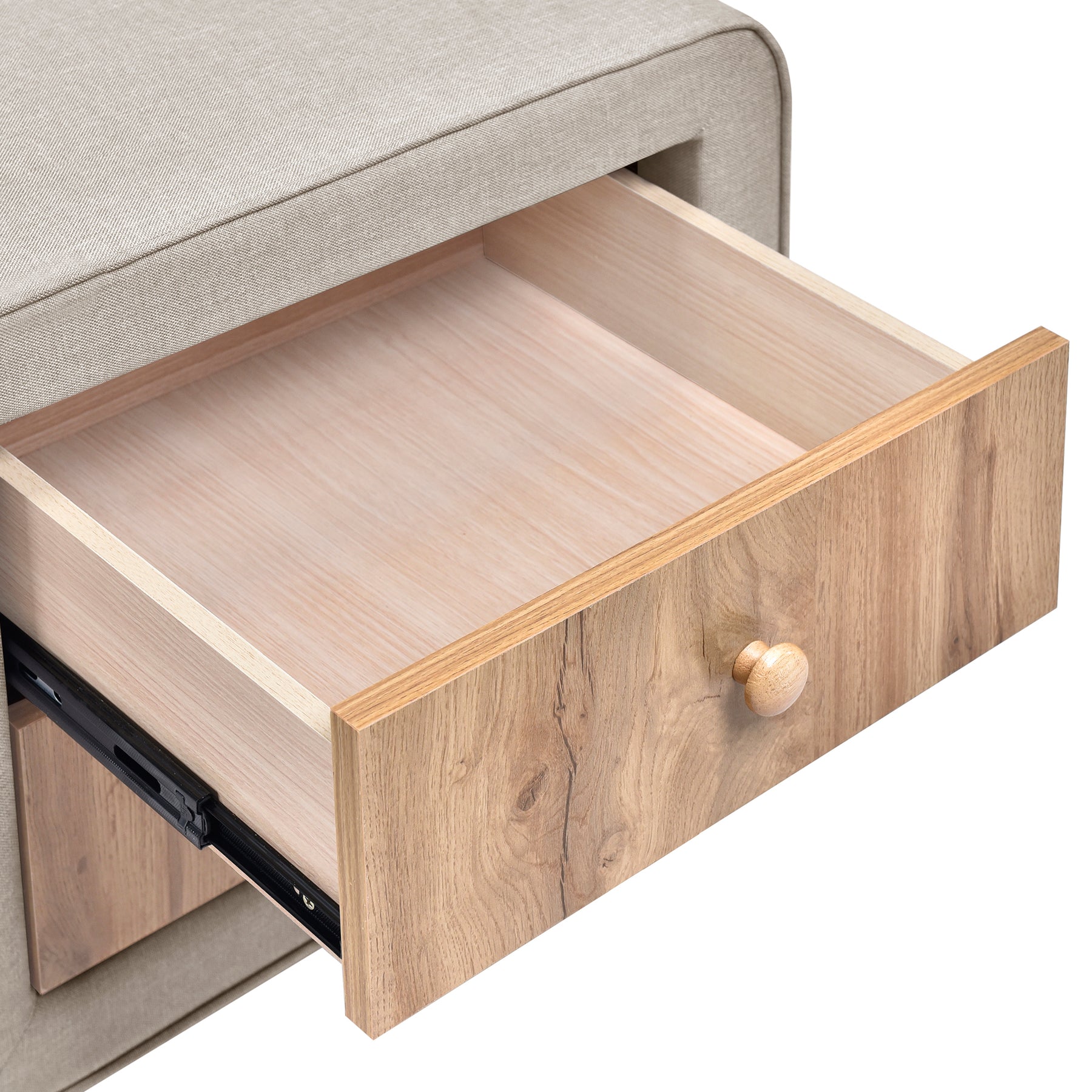 - Unique Design: The combination of linen and wood grain drawer fronts is original and elegant.This modern and contemporary upholstered nightstand with drawers is compatible well with any furniture. Can also be a end table to match with you sofa, easy to diverse home decoration and most tone style.