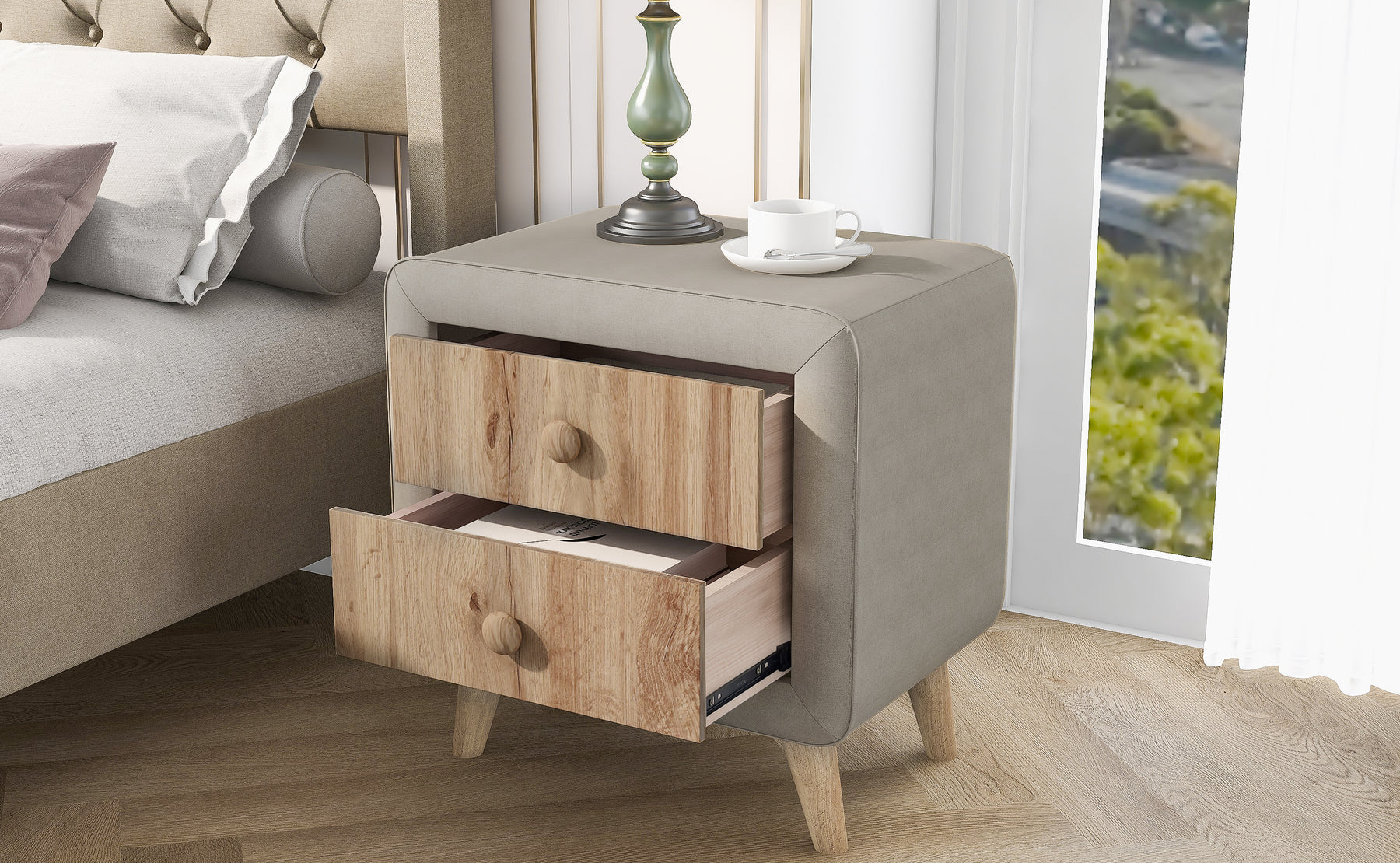 Upholstered Wooden Nightstand with 2 Drawers,Fully Assembled Except Legs and Handles