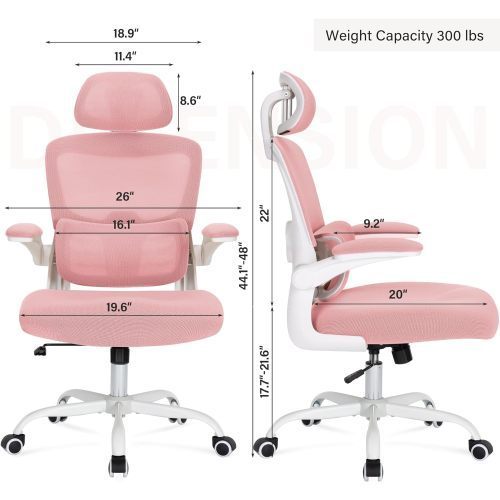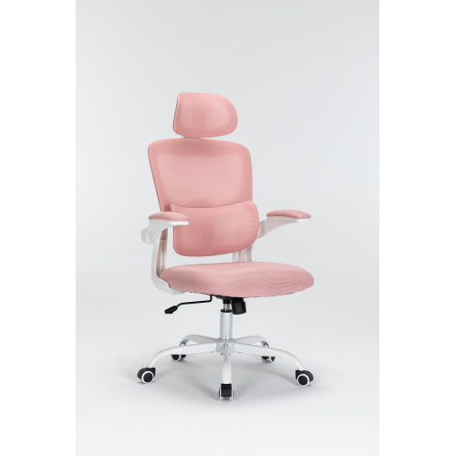 WHITE Ergonomic Mesh Office Chair, High Back - Adjustable Headrest with Flip-Up Arms