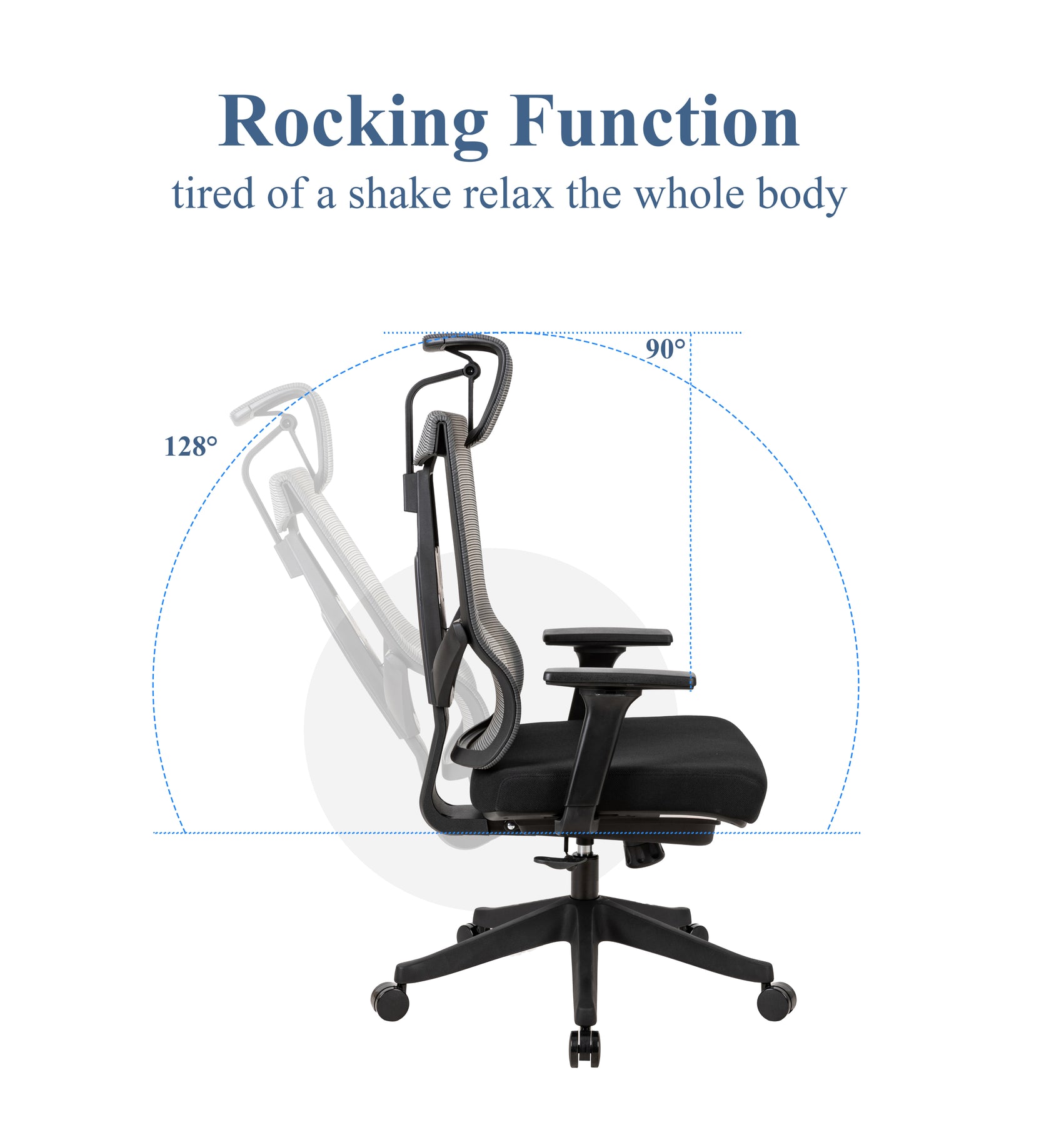 - Tilt tension function: 4 gears locked, and the maximum tilt angle is 128 °.