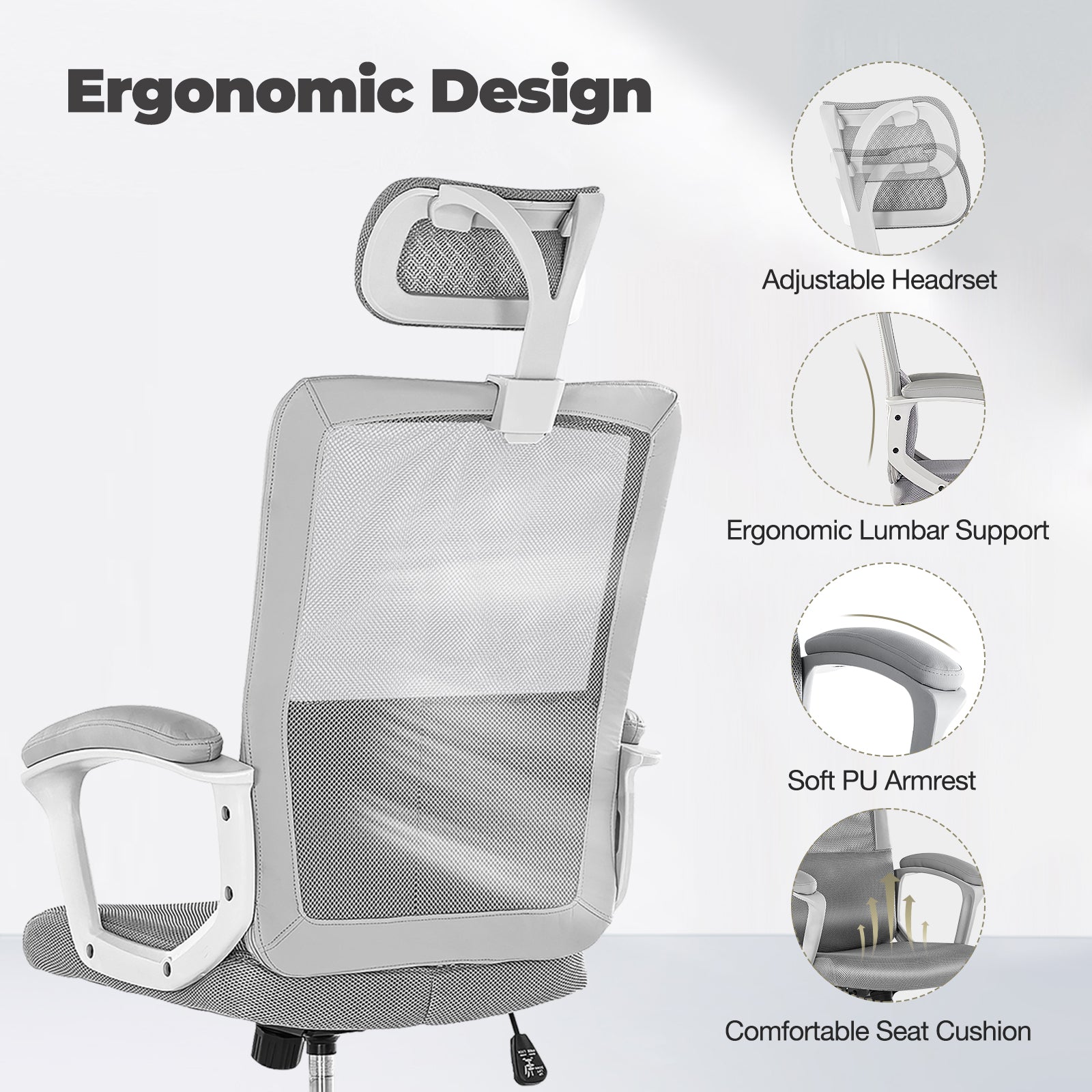 - 【Adjustable 3D Headrest】The detachable headrest of the computer chair can be adjusted up and down 1.5 inches and automatically rotates 45 degrees with the neck to find the most comfortable position. The high back office chair can relieve neck fatigue or pain caused by long periods of sitting.