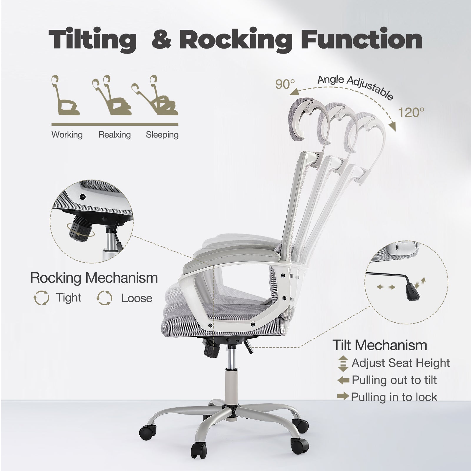 - 【Ergonomic Design & Rocking Function】The ergonomic office chair comes with a high back and non-removable lumbar pillow to fit your body curves. The office desk chair can be tilted by 90°~120° and it can only be locked in the upright position and cannot be locked in other positions.