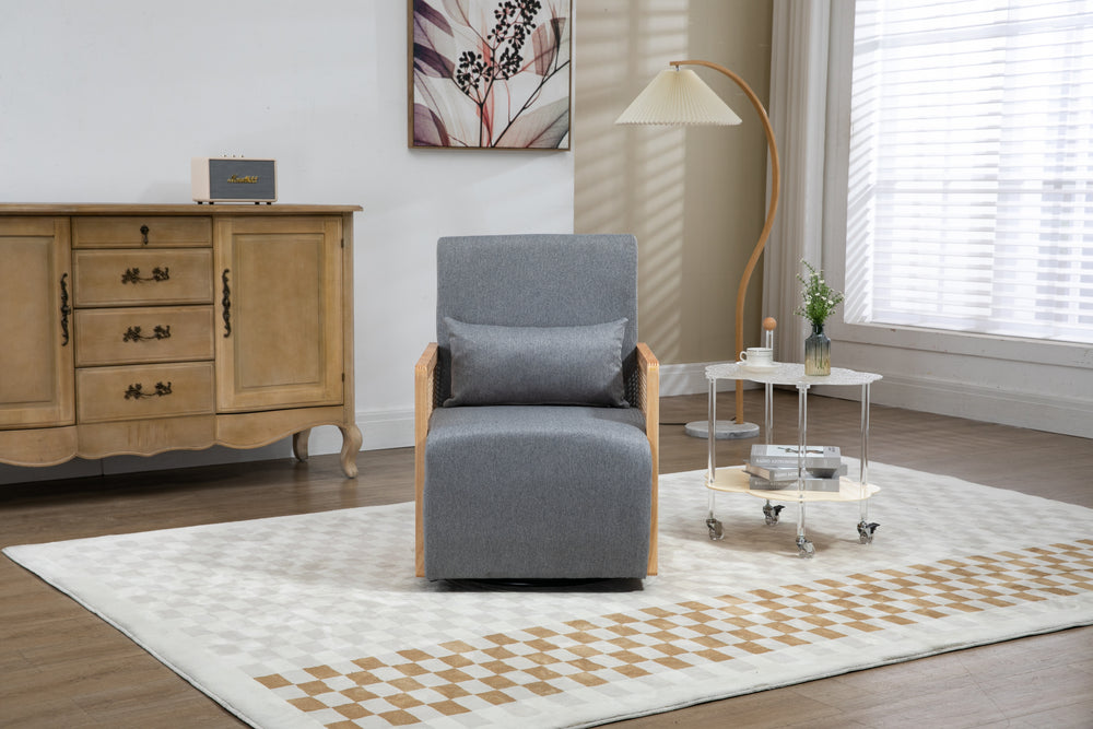 360 Degree Swivel Barrel Club Chair with one pillow,Modern Comfortable Upholstered Accent Chair (Grey linen)