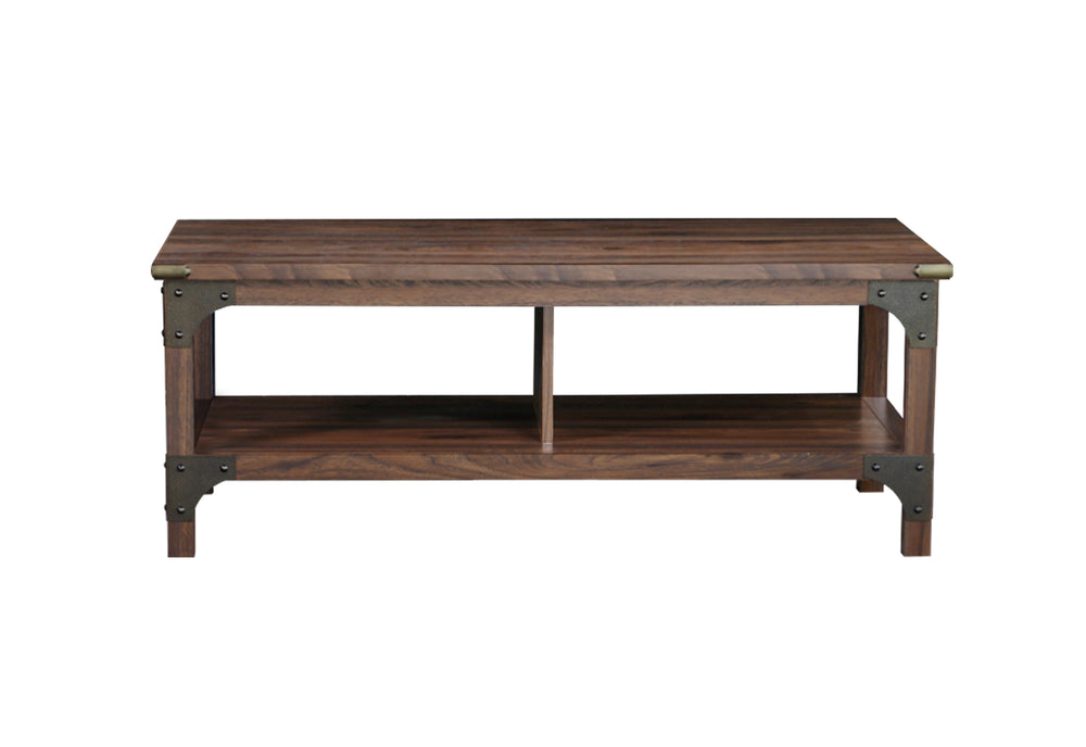 Rustic MDF Coffee Table with Metal Legs - Natural Wood Tone Elegance for Your Space