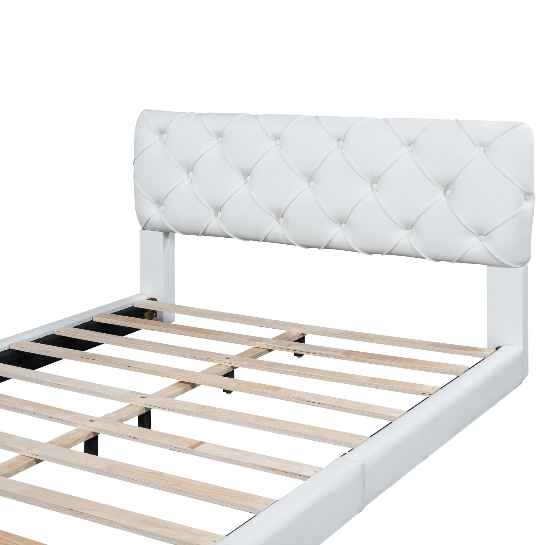 - [Upholstered Platform Bed] Elegant style upholstered in carefully-selected PU leather, features stitching details, this bed not only suits any home décor, but is timeless in its design.