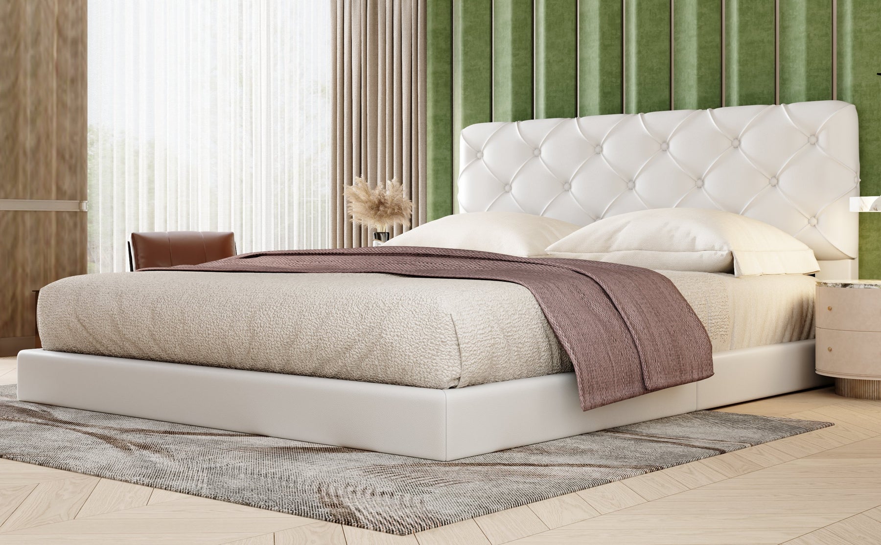 - [With Headboard] The foam-filled upholstered headboard provides a more comfortable and safe sleep. Tufted design adds a premium feel to your room.