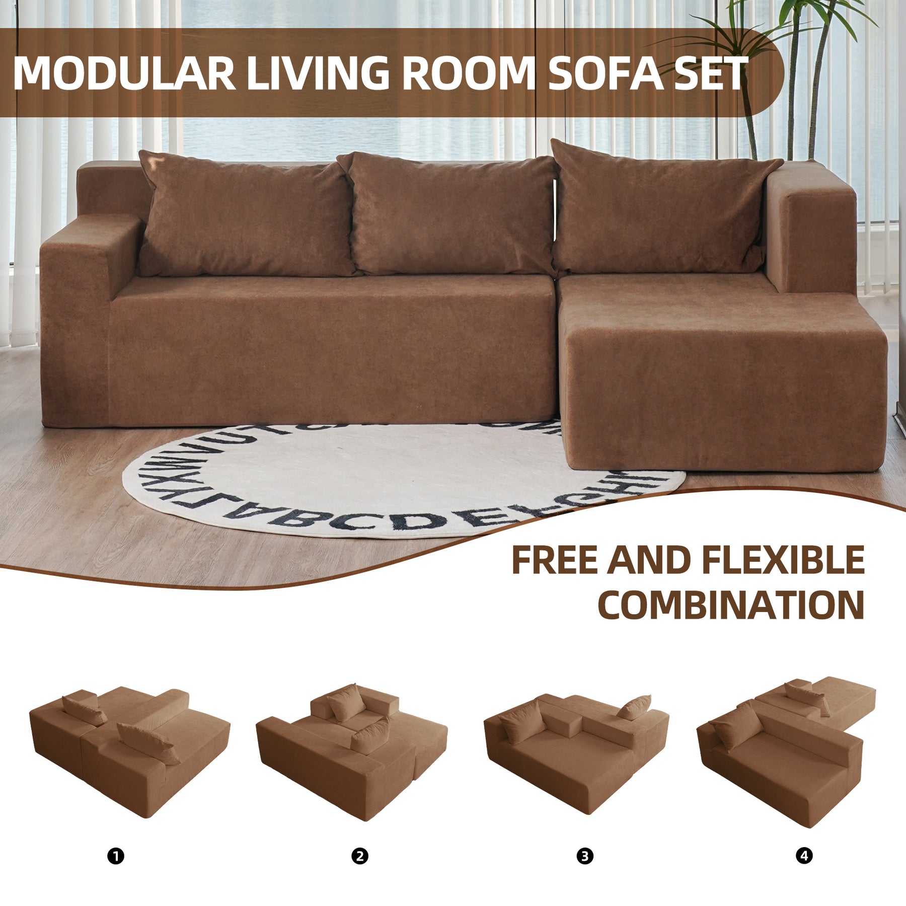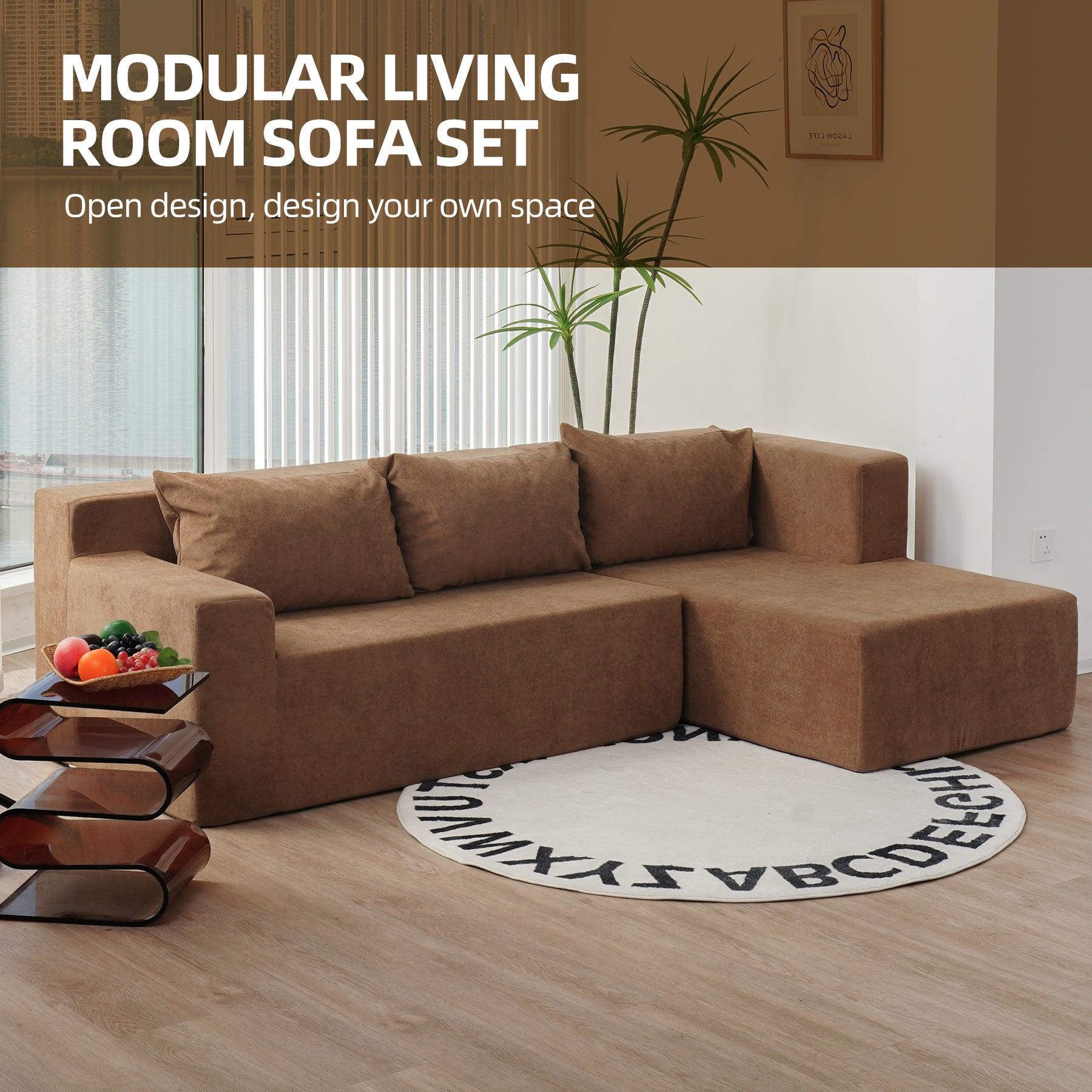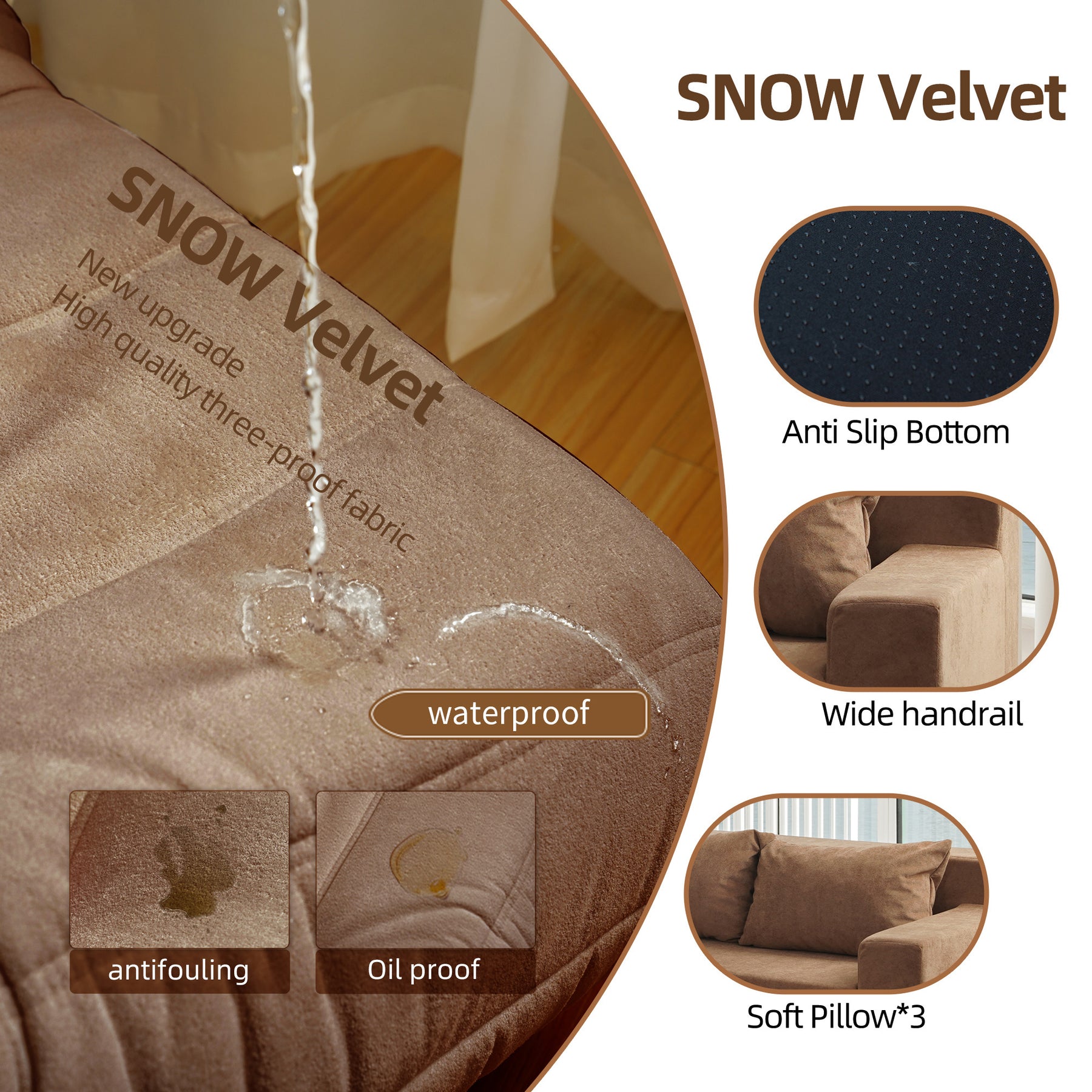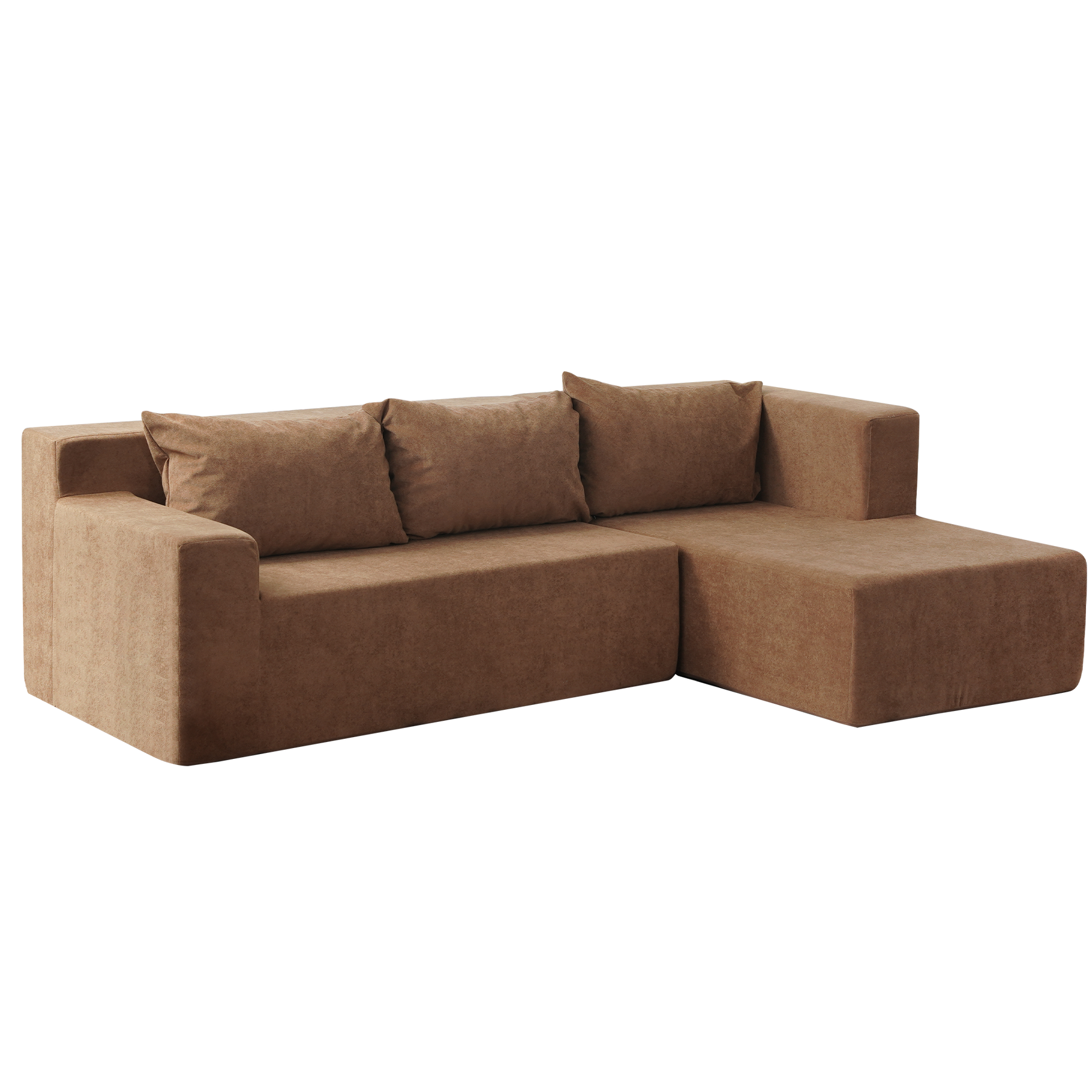 modern sectional sofa is made of soft, breathable snow velvet fabric and is crafted entirely from high-density sponge. The extra-wide seat provides plenty of lounging space and delivers cloud-like comfort.
