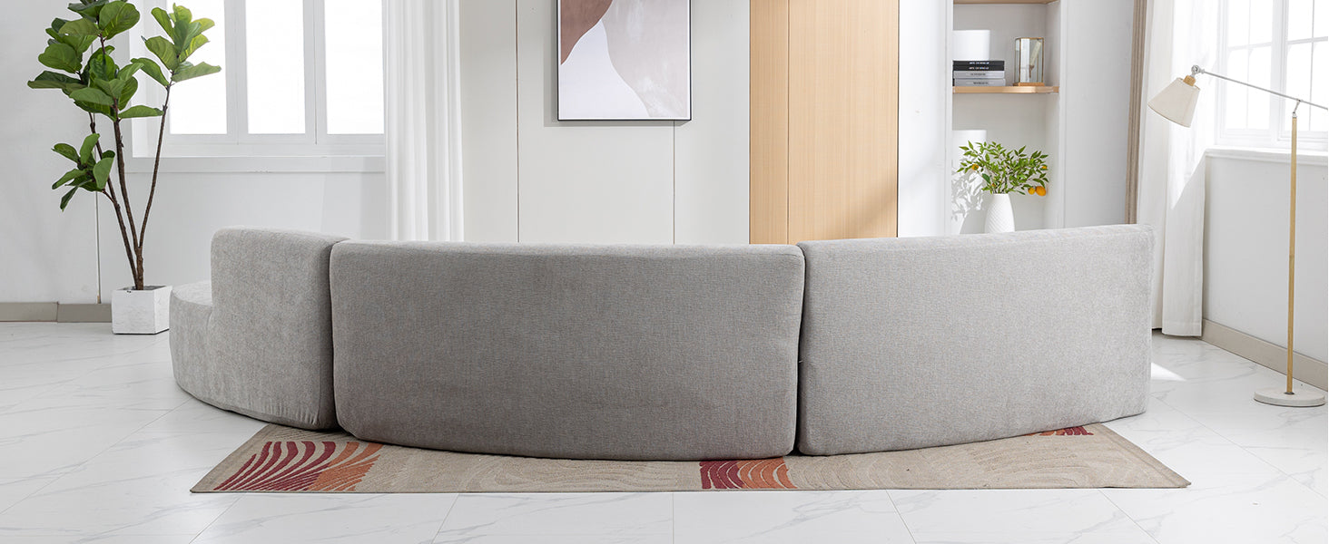 - Stylish and Functional Sofa - This curved sofa is designed to be both stylish and functional. The absence of legs allows this sofa to flow with elegance. What’s more, it also provides ample seating space for multiple people to relax and socialize. Its unique shape makes it a great addition to any room. Overall, this curved sofa is a must-have for those who want to make a statement with their furniture choices while maintaining comfort and functionality.