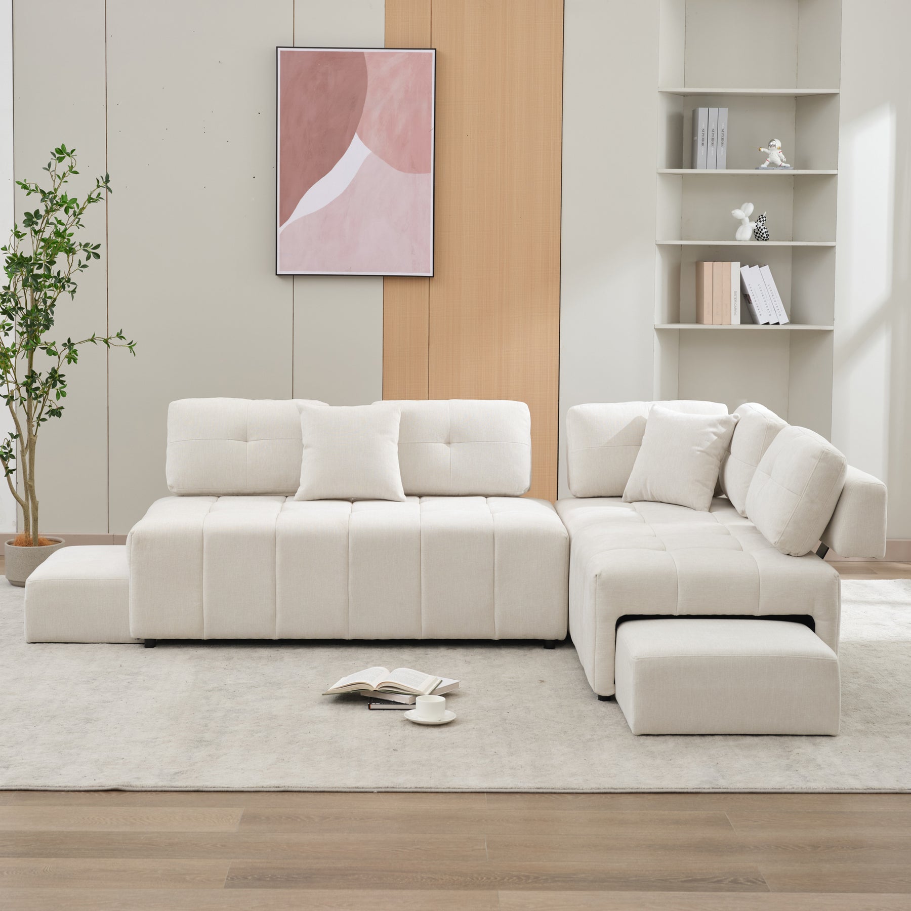 - Space-saving Sofa - This sofa is equipped with two hidden stools under the sofa, which can be movable. When you need to use them, you can just pull them out. Moreover, they can be easily stowed away when not in used. It helps to keep your floor clutter free and bumps free floor.