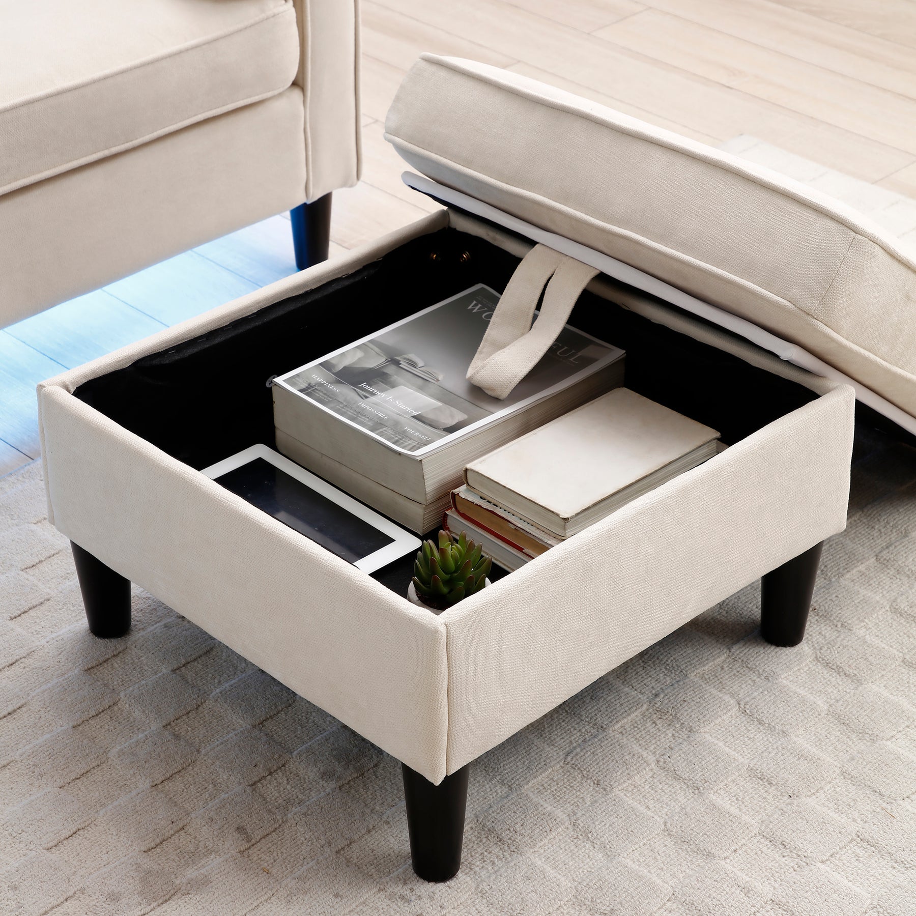 - The ottoman is removable. You can place it anywhere to suit your needs. You can use the sofa as a left L-shaped sofa or a right L-shaped sofa. And you can also use the ottoman as a separate bench.The ottoman with storage offers plenty of room for extra blankets, pillows, toys, magazines, or any other items you want, making the storage ottoman coffee table an ideal storage solution for any living room or bedroom.
