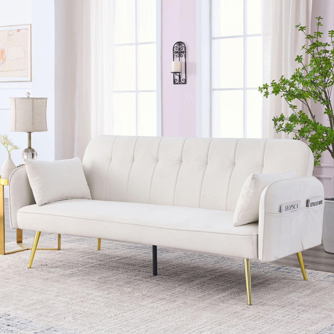 72.5" Sofa Bed with Two Pillows and Center Leg