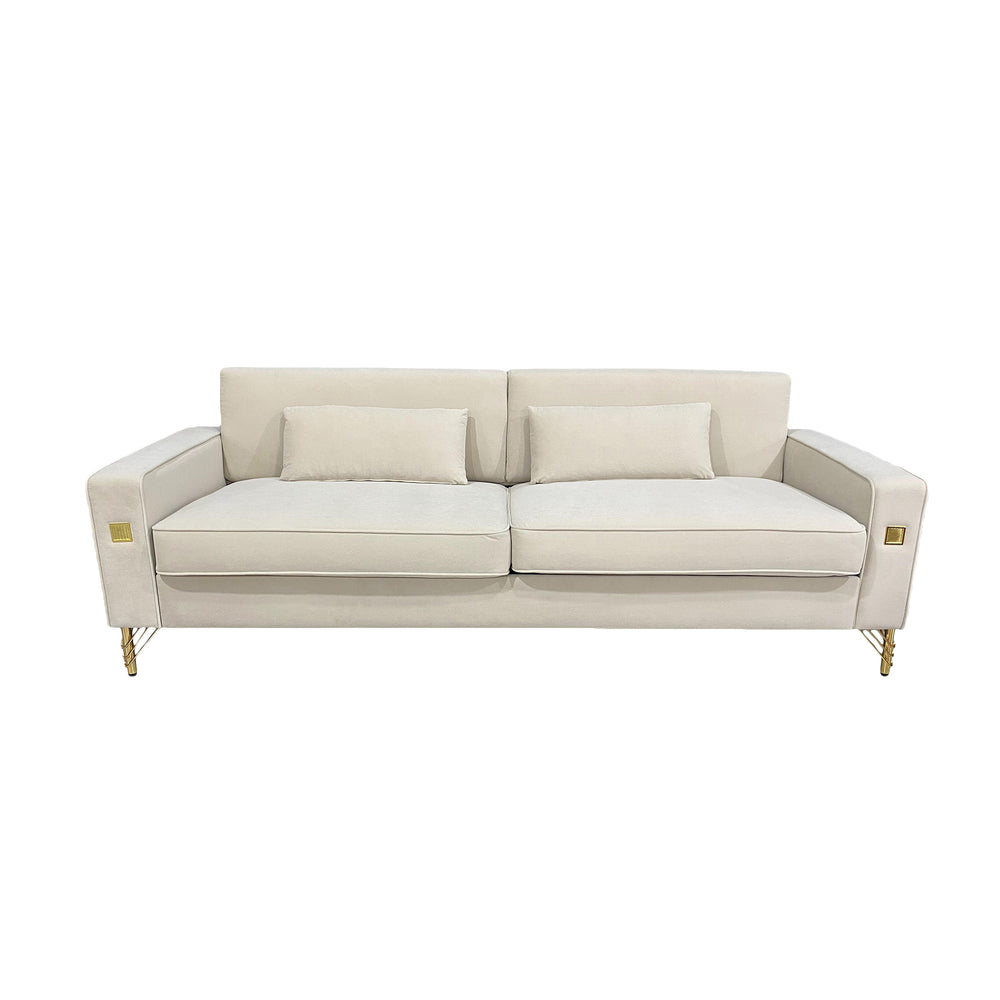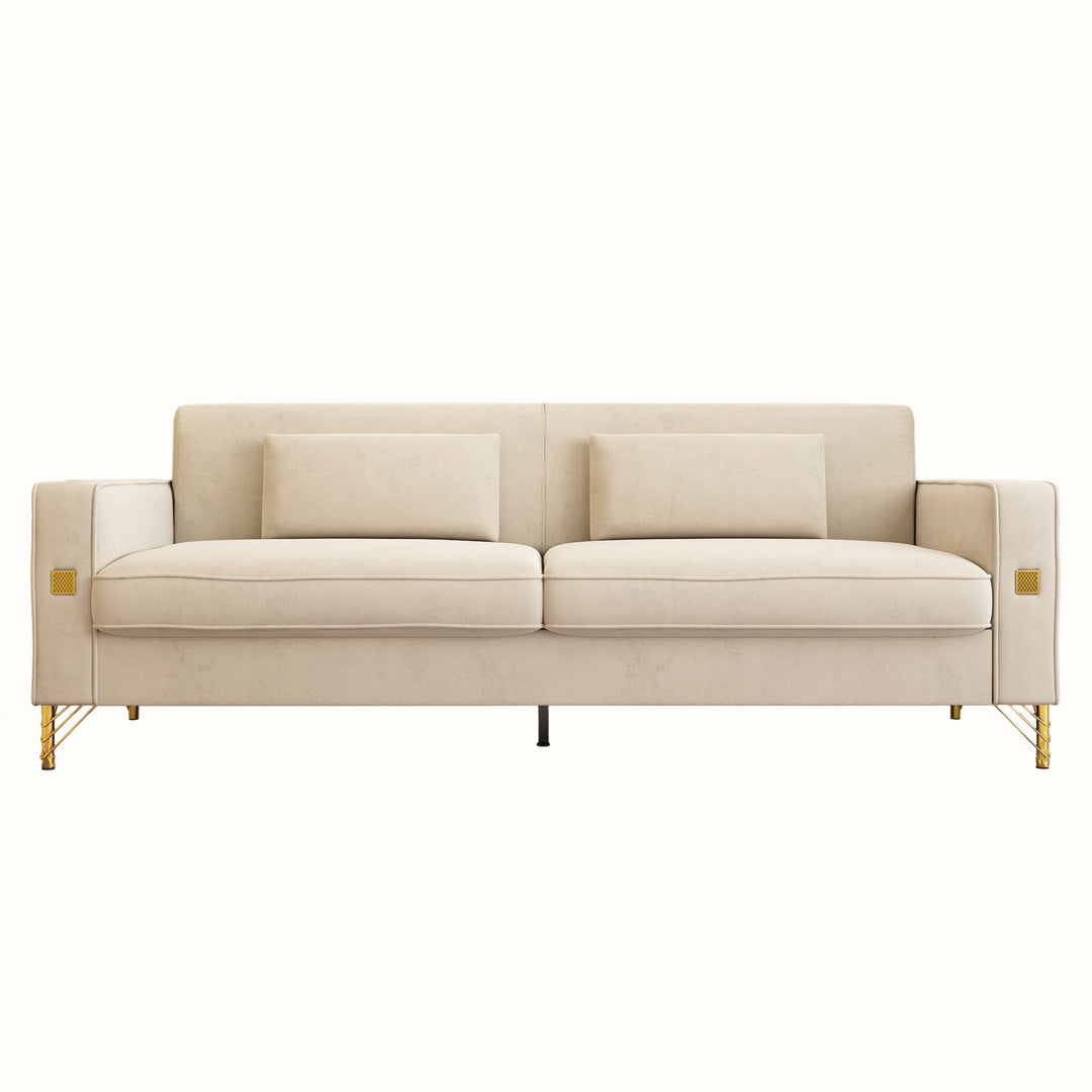 Velvet Sofa with Gold Accents