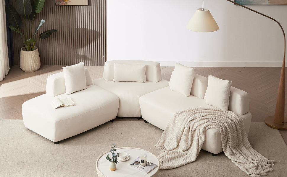 - Contemporary Sophistication and Ample Seating - This 3-piece sectional sofa features as an armless sofa whose ends introduce visual intrigue, breaking the room's linear design. Its graceful curved seating arrangement and modern aesthetics enhance your living space with a fresh, stylish touch that harmonizes seamlessly with diverse home decor styles.