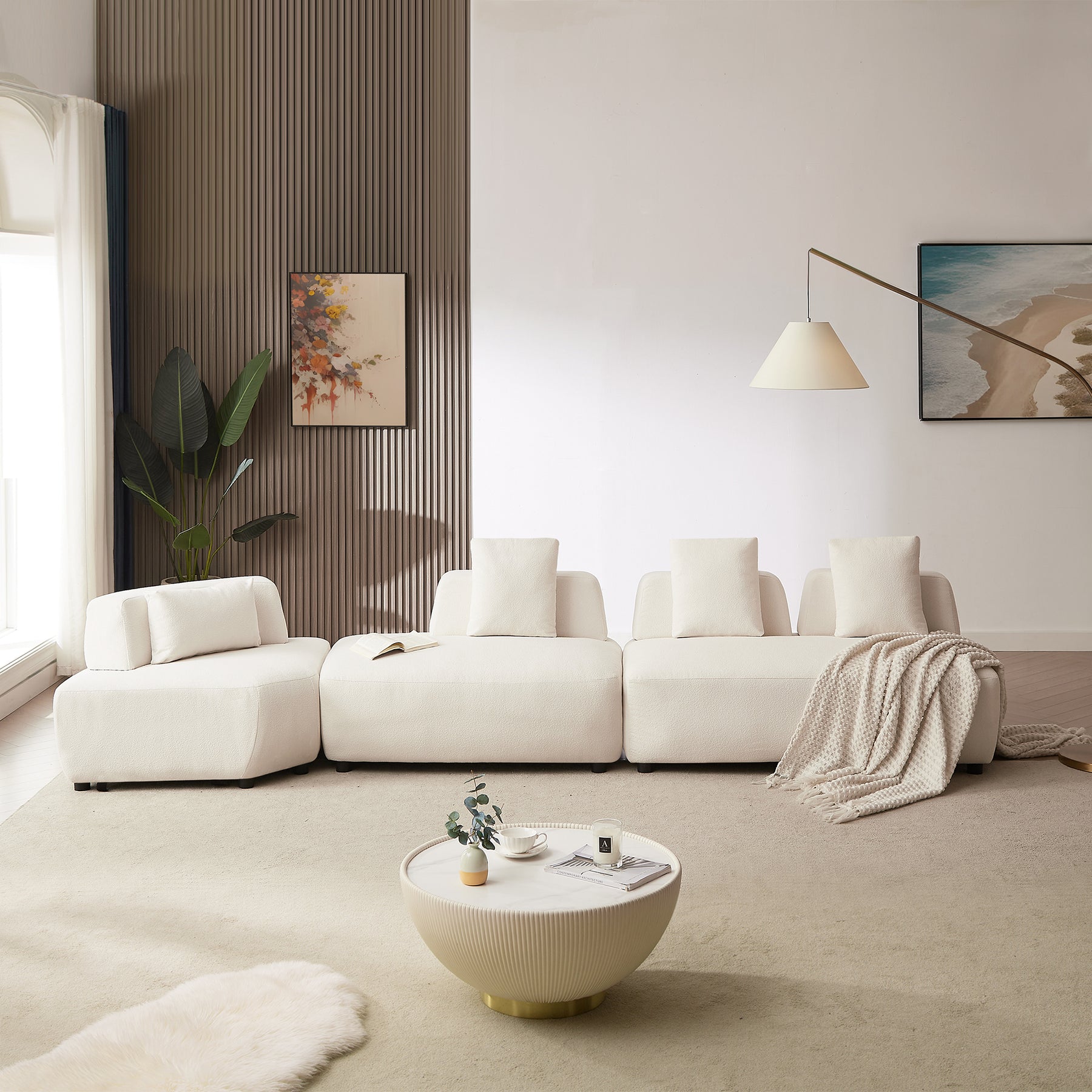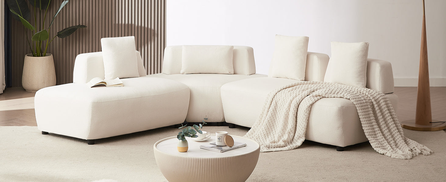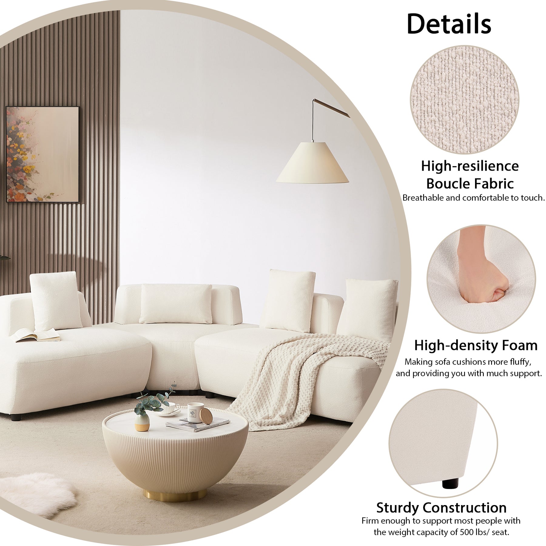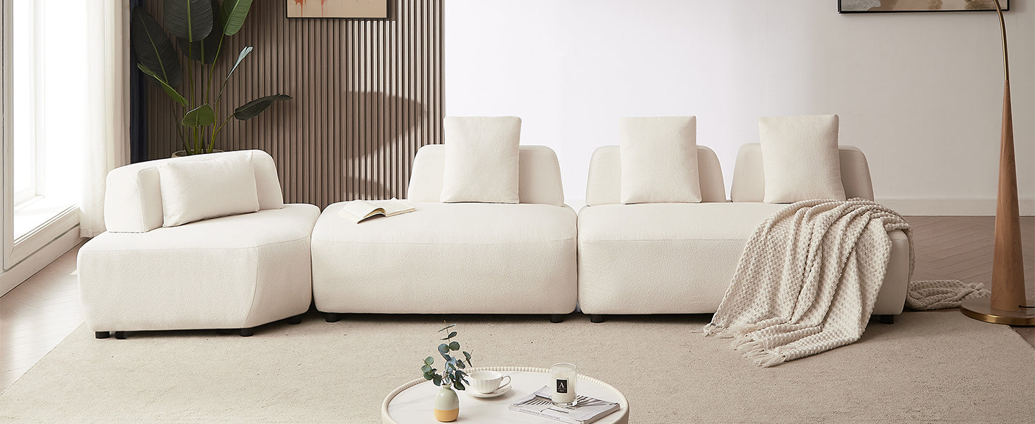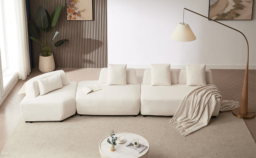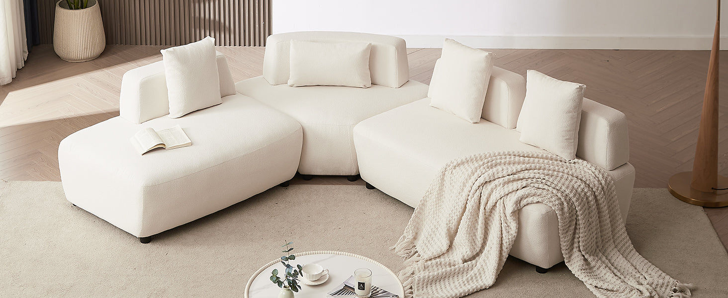 - High-quality Material - The modern sofa is covered in high-resilience Boucle Fabric which is breathable and soft, making the sofa more comfortable to touch. And the seat cushions are filled with high-density foam, making sofa cushions more fluffy, and providing you with much support.All these high-quality materials will ensure you never feel uncomfortable when you sit or lie on the sofa.