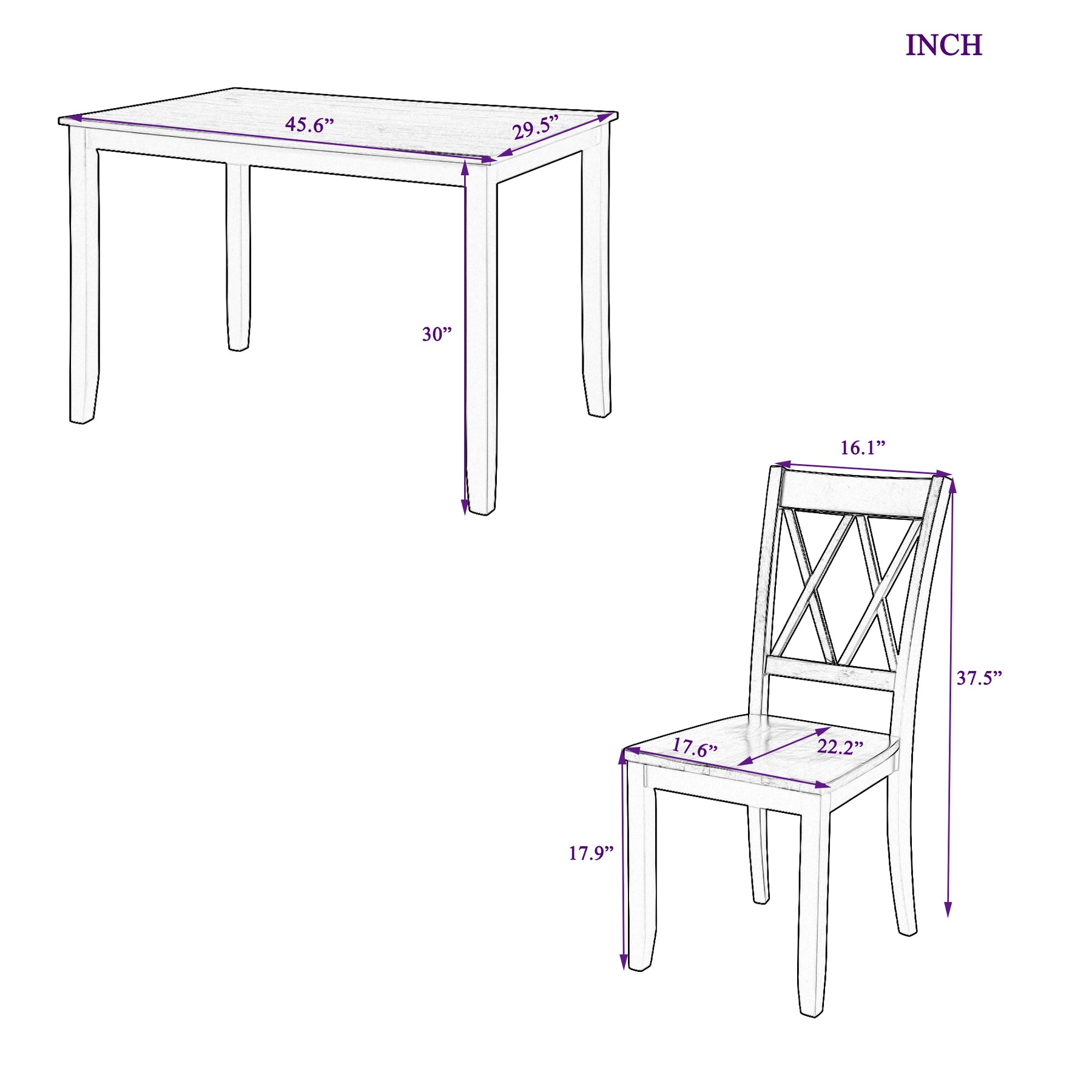 - [Dimension&Warranty] This dining set includes 1 table and 4 chairs. Table size: 45.6" x 29.5" x 30" (L x W x H); Chair size: 17.6" x 22.2" x 37.5" (L x W x H) ; Table weight capacity: 250lbs; Single chair weight capacity: 352lbs. If any issues, please feel free to contact us.