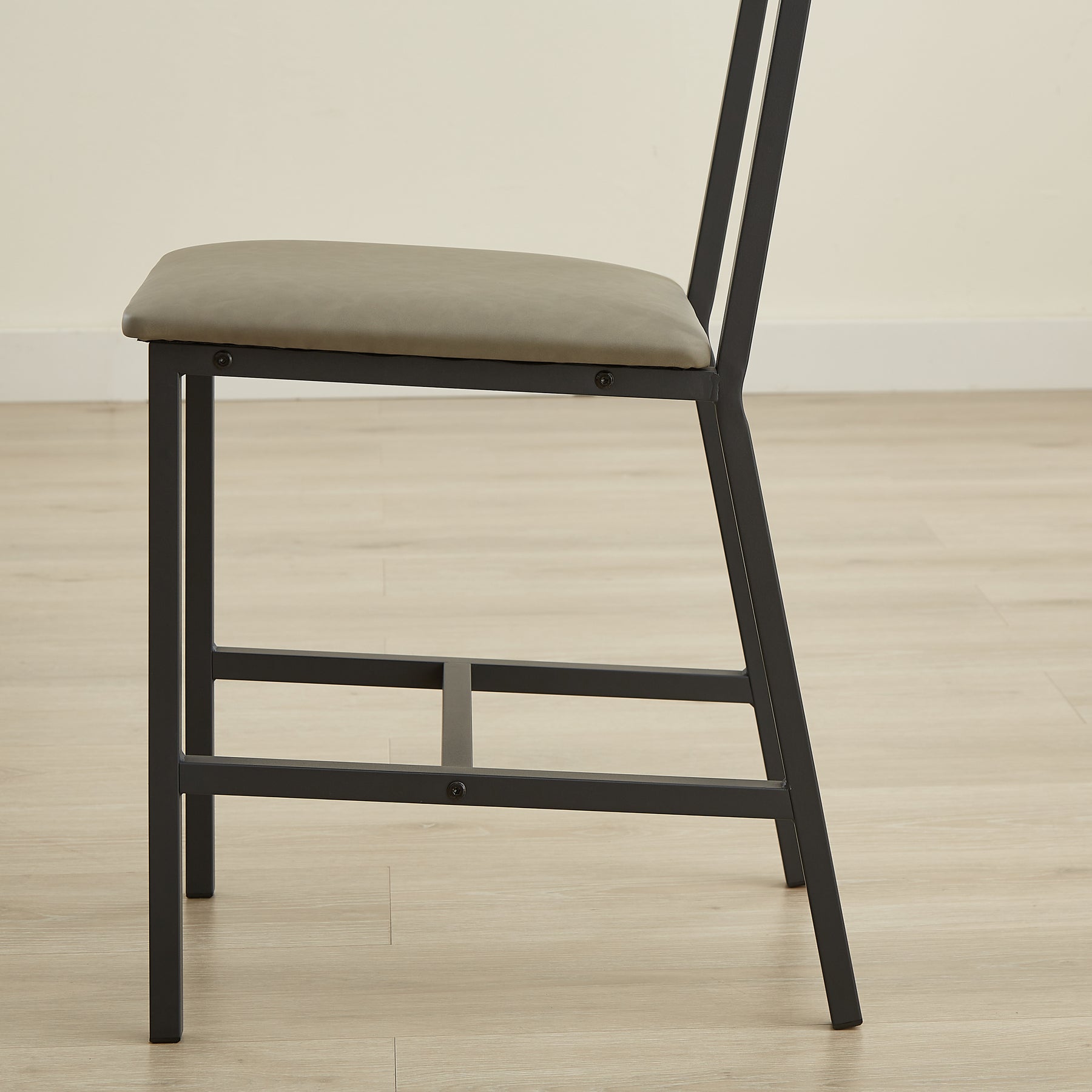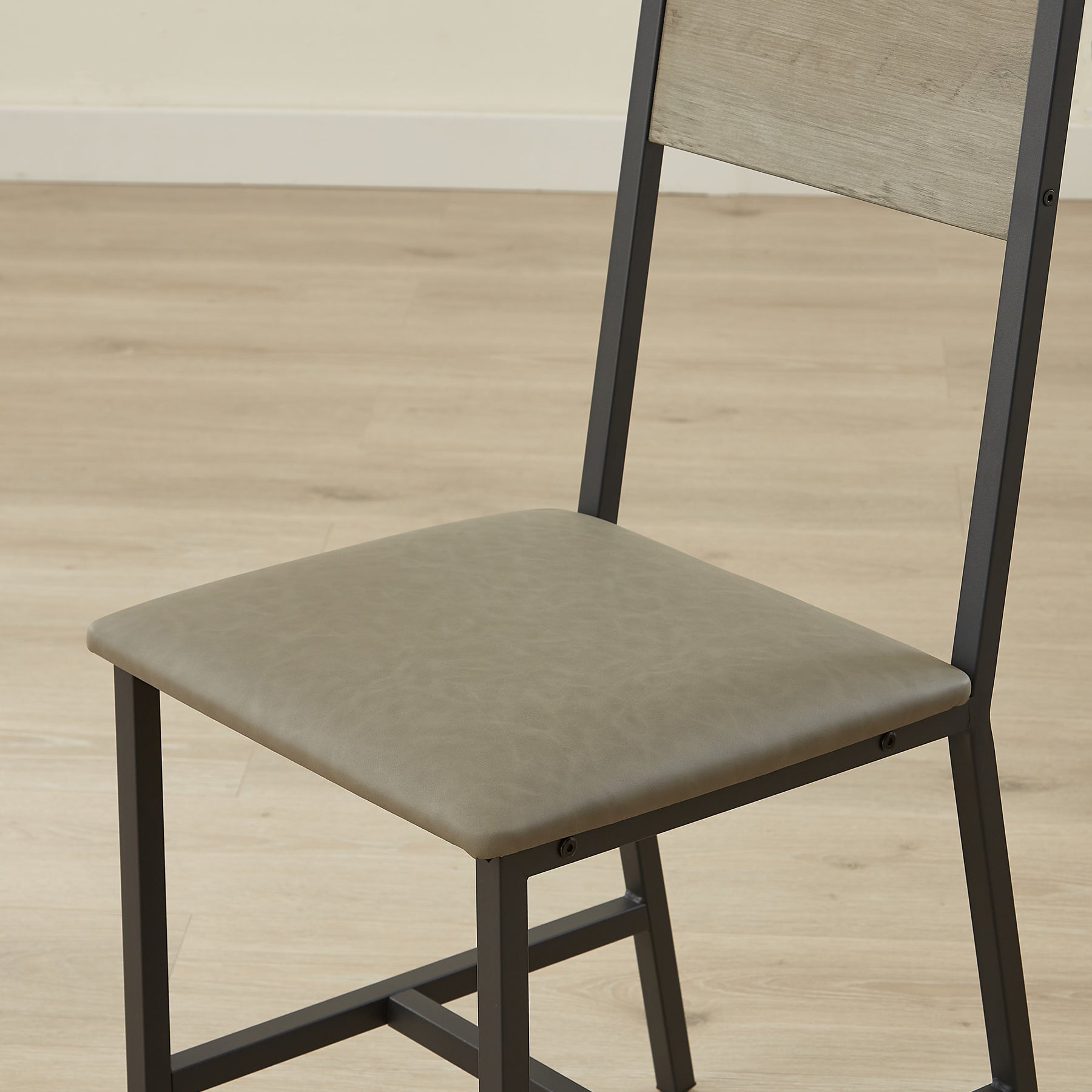 - Table legs and chairs are made of heavy-duty steel, table top with rich wood grain finish and chairs with comfortable leather seat, well made and durable.The modern style black metal frame has a powder coating has an rust-resistant effect