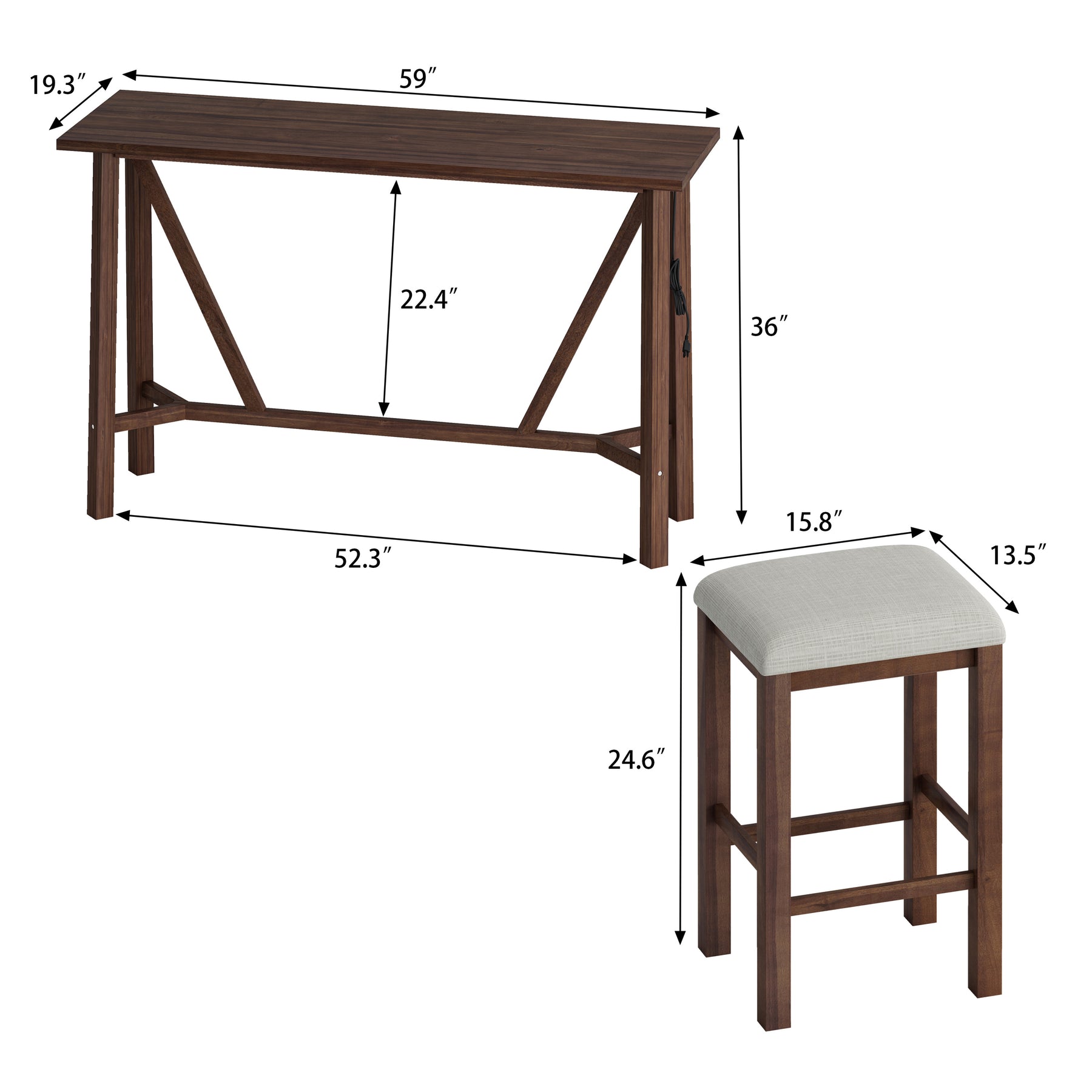 Product Dimensions/Weight | Table:59"L x 19.30"W x 36"H, 54.01 lbs Stool:15.80"L x 12.60"W x 24.60"H, 11.90 lbs/piece |