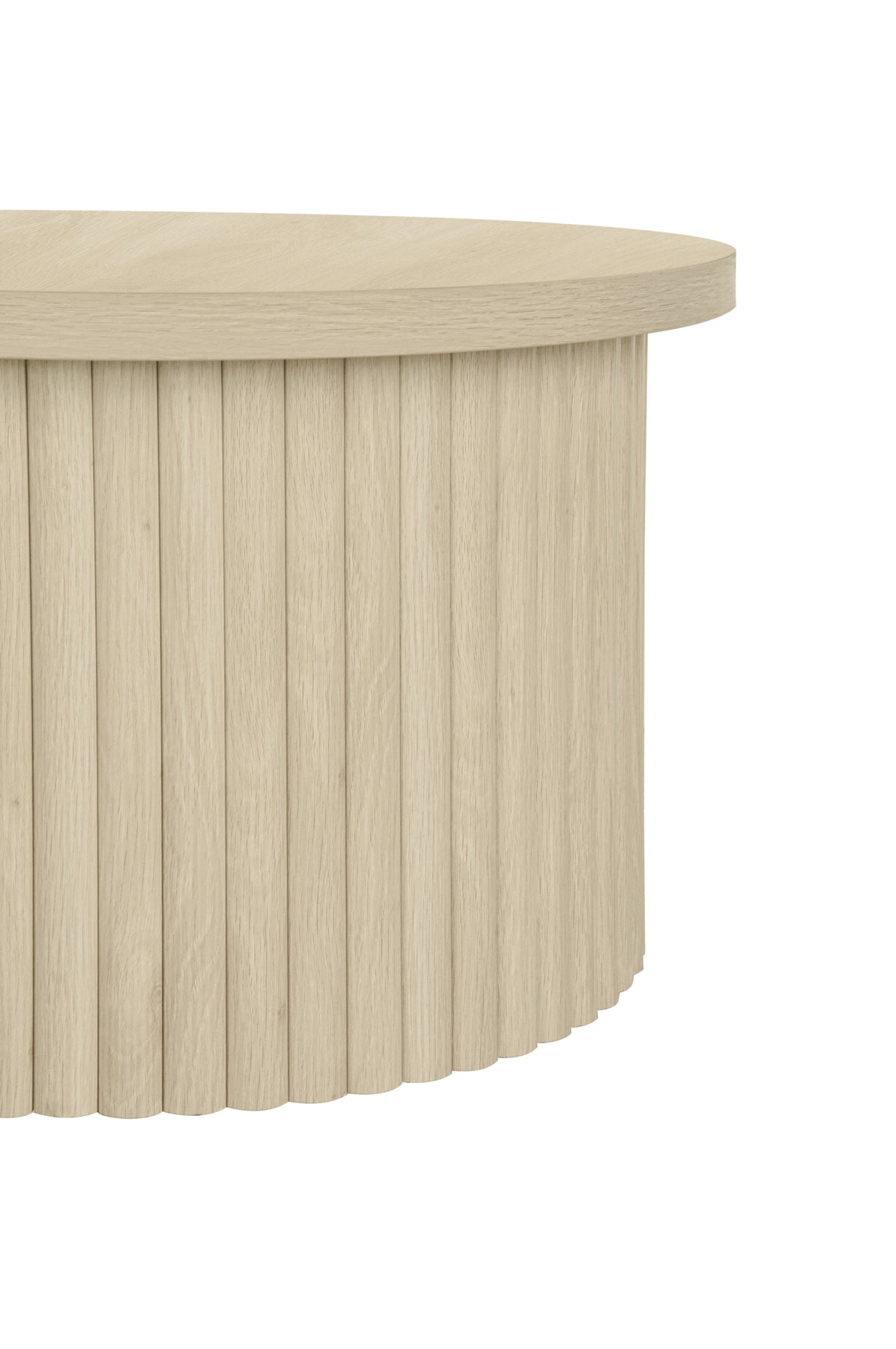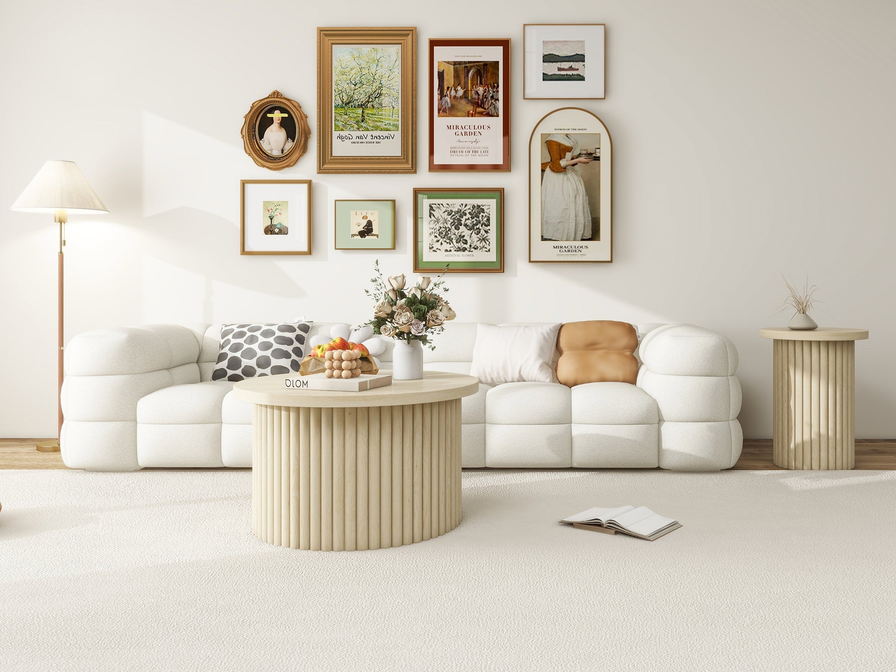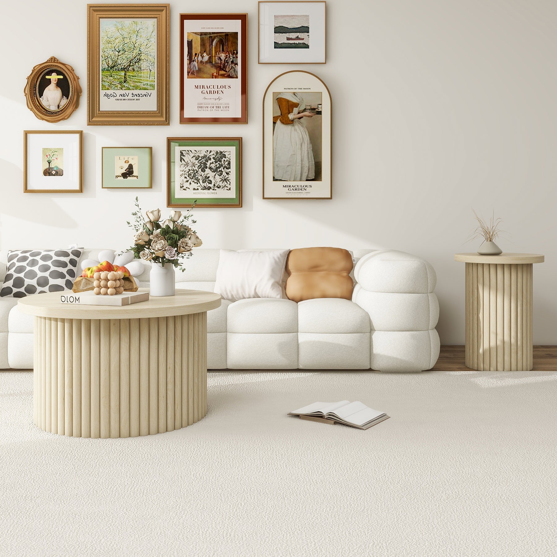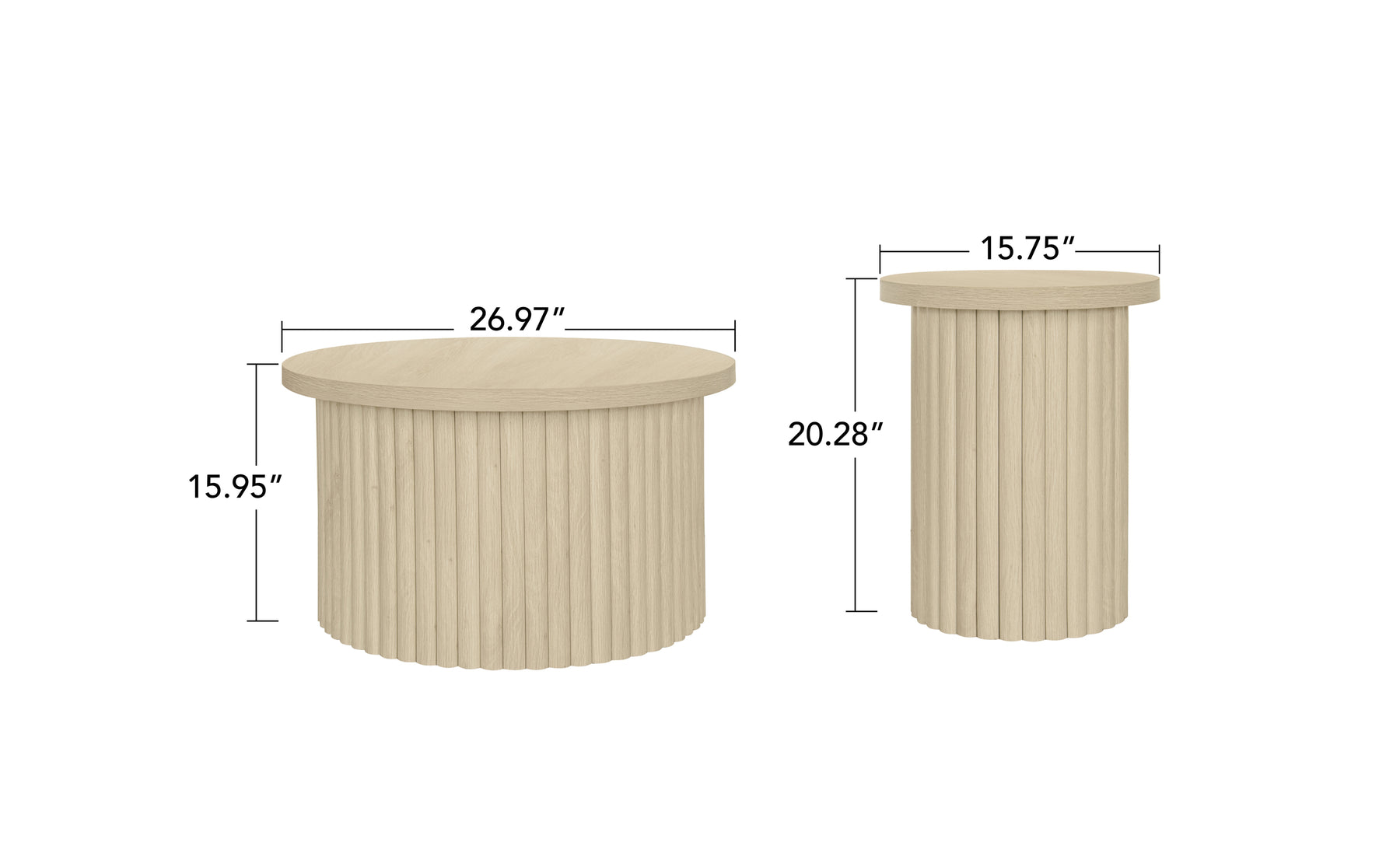 - Round set of two coffee tables, one large and one small, can be combined in a variety of ways, can be used side by side, can be used separately.