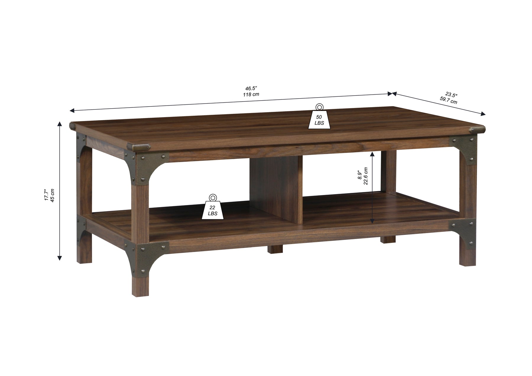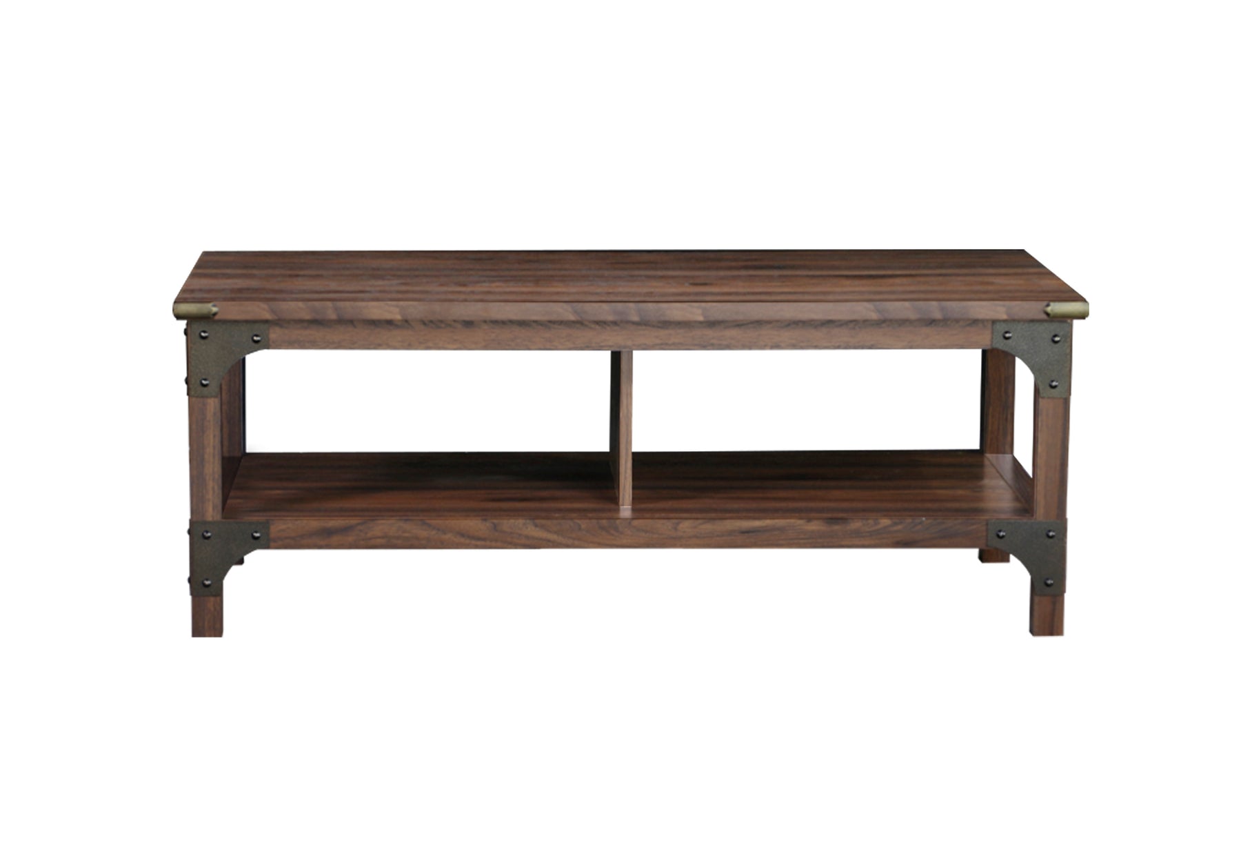 - Vintage Industrial Charm: This walnut coffee table infuses a warm, classic aesthetic with industrial metal brackets and accents, offering an inviting centerpiece for any living room setting.