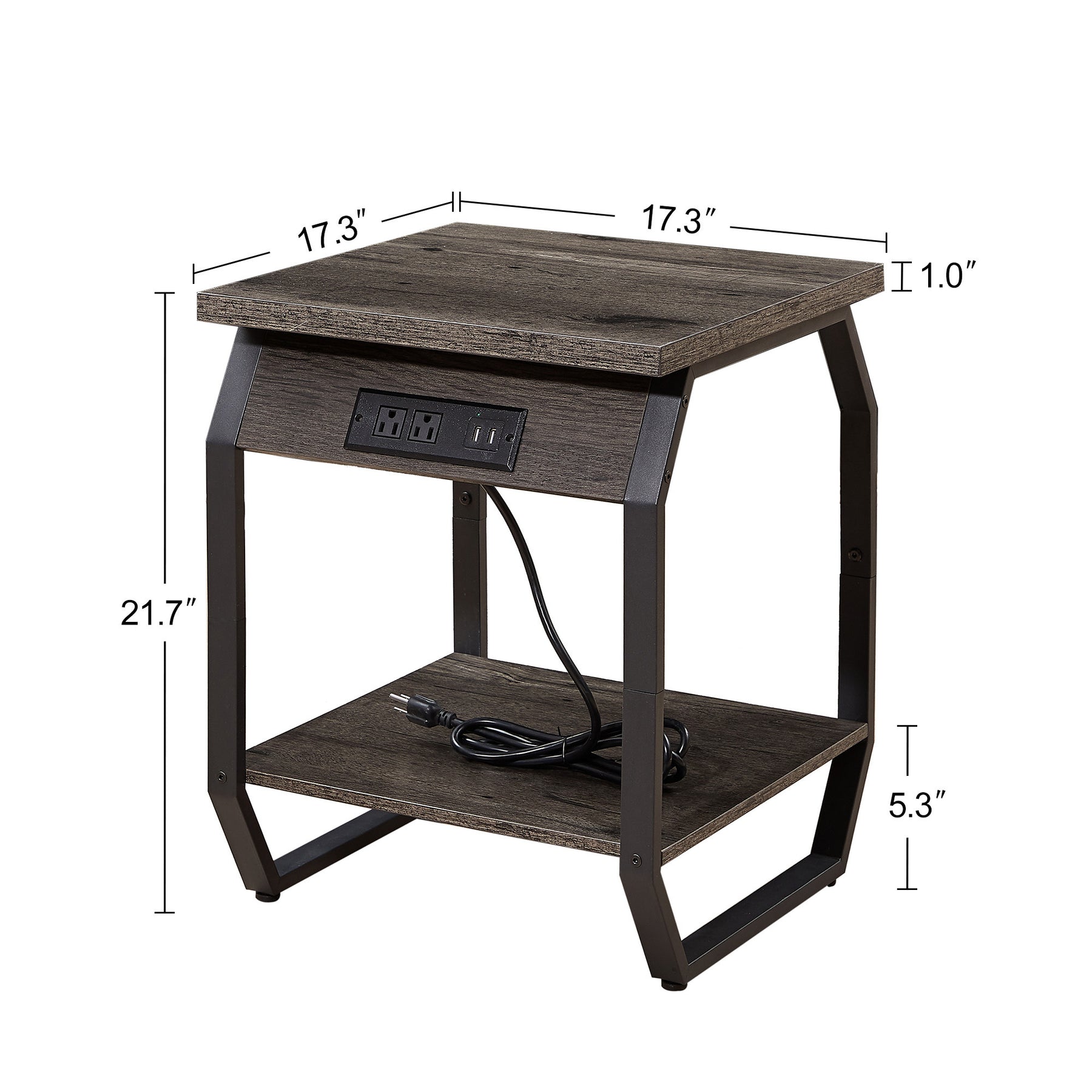 - Side table with charging station: Low battery? These side tables come with two AC outlets, two USB ports, and a 6.5-foot power cord to charge your devices.