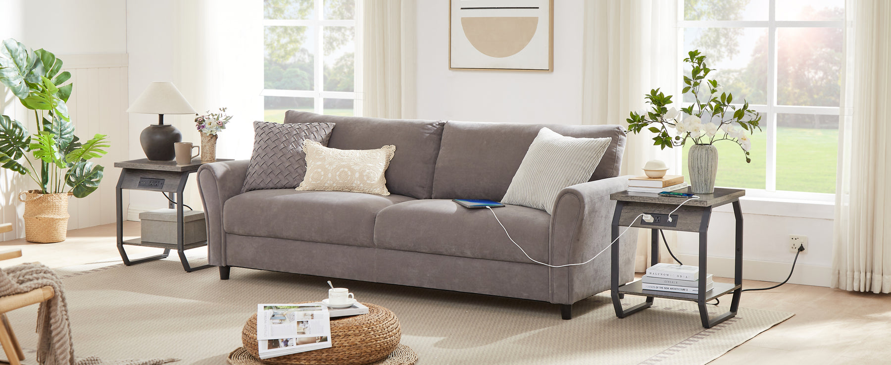 Charge your devices with these side tables featuring two AC outlets, two USB ports, and a 6.5 ft cord each.