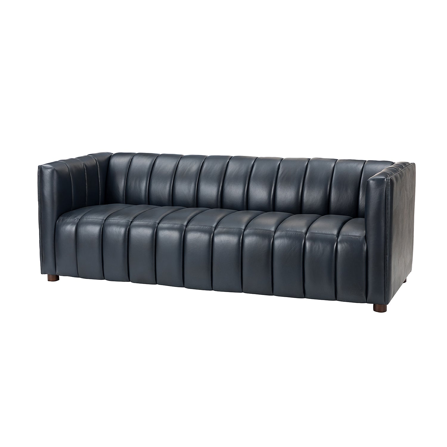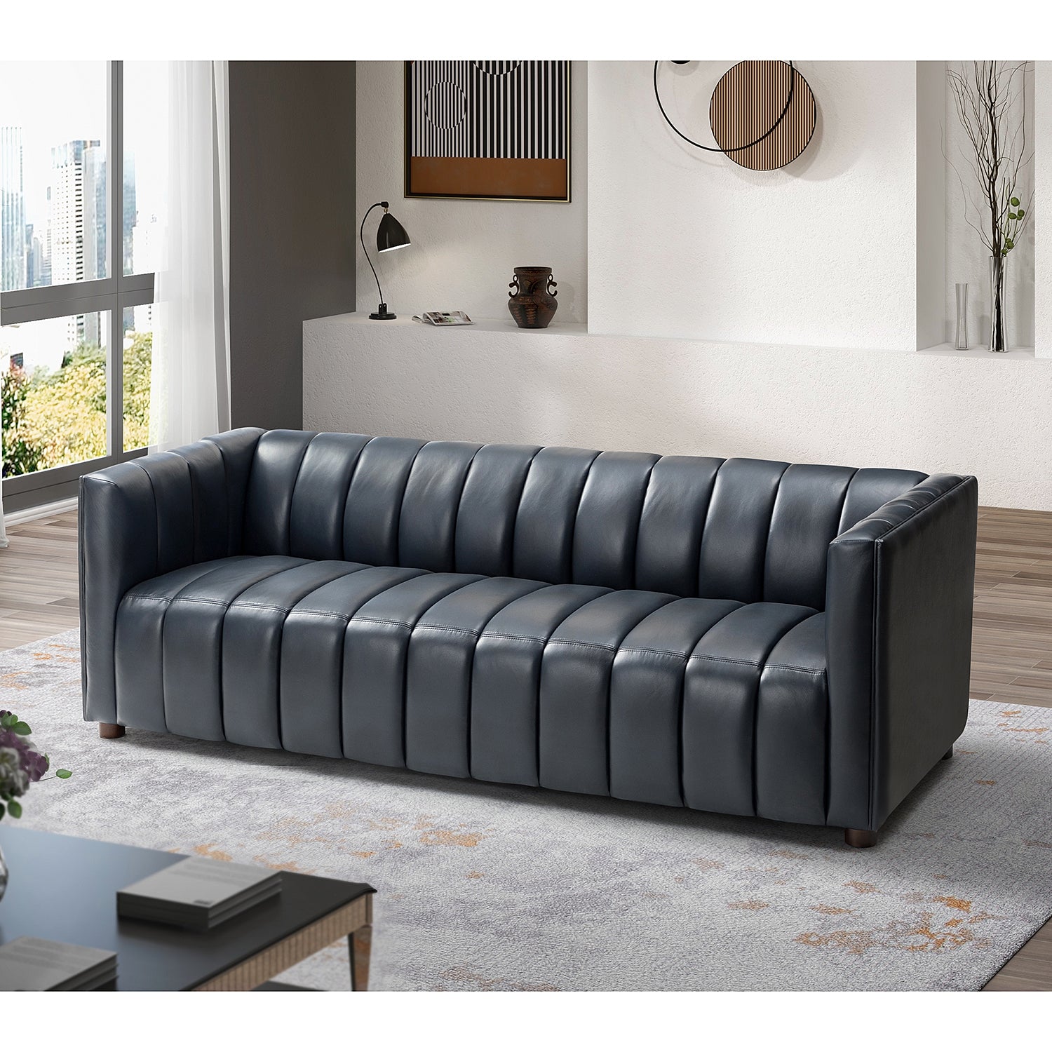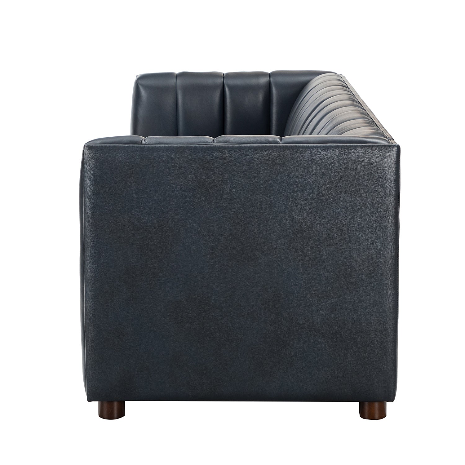 The sleek lines and luxurious fabric of this sofa add flair to your living space. Made of a wooden frame, this sofa features a channel-tufted back and cushions and square arms.