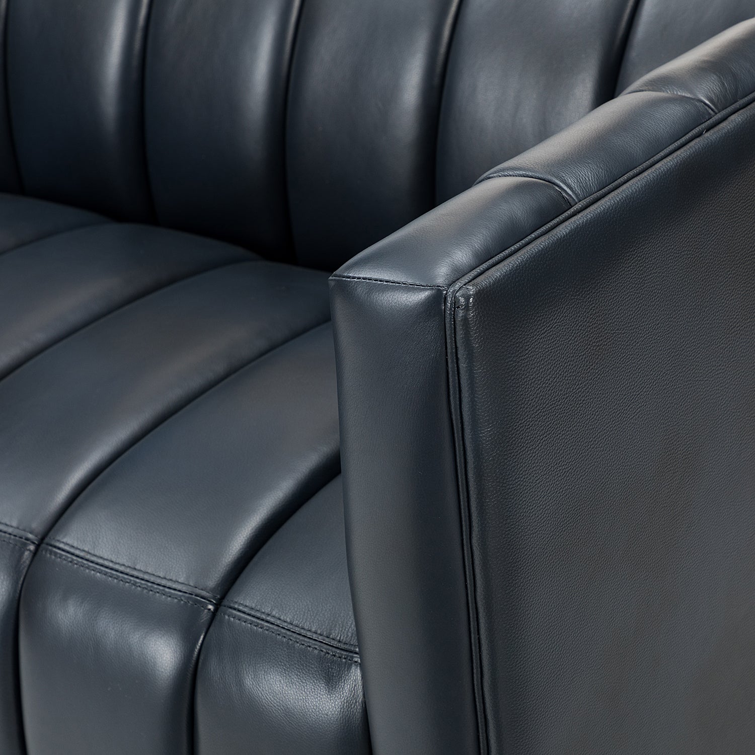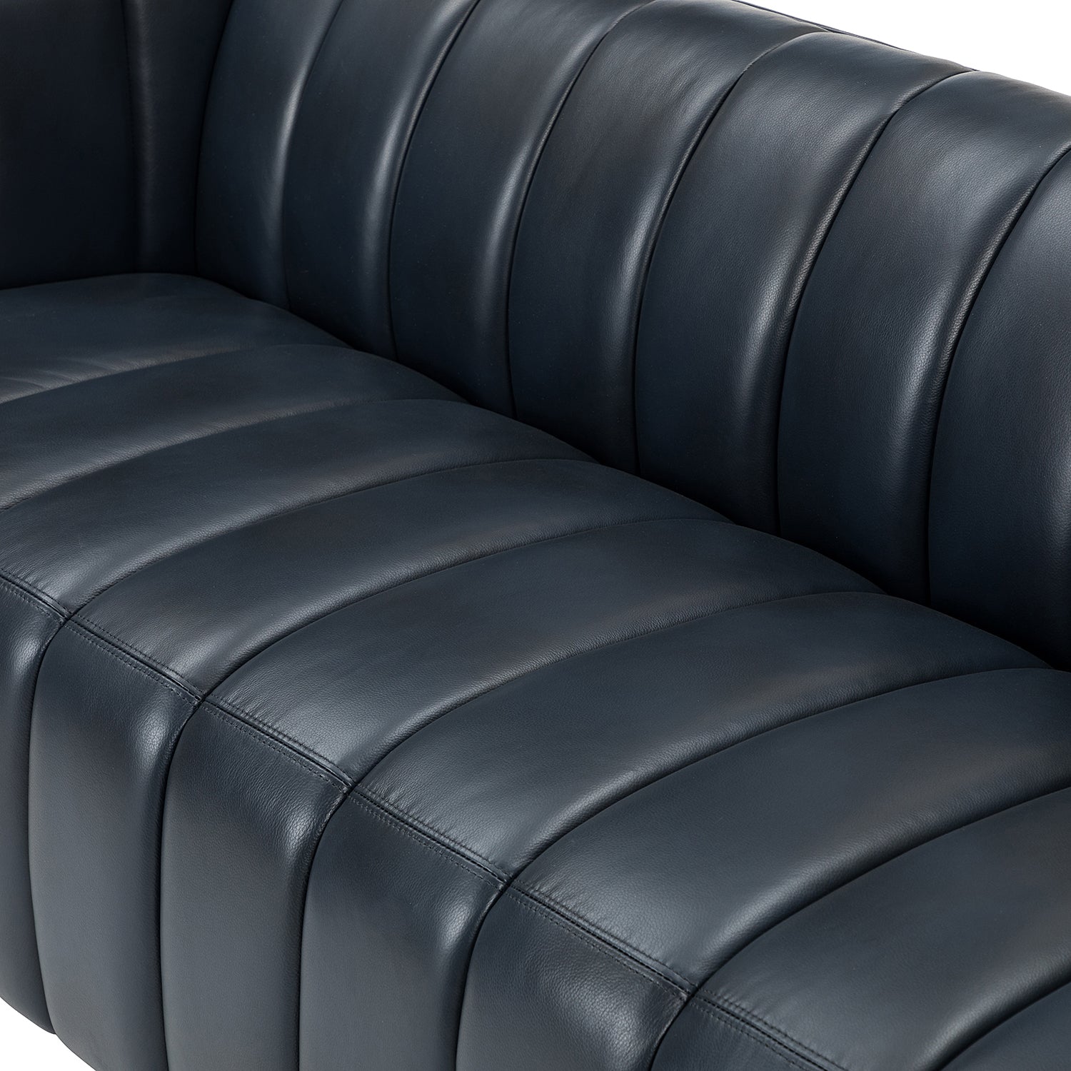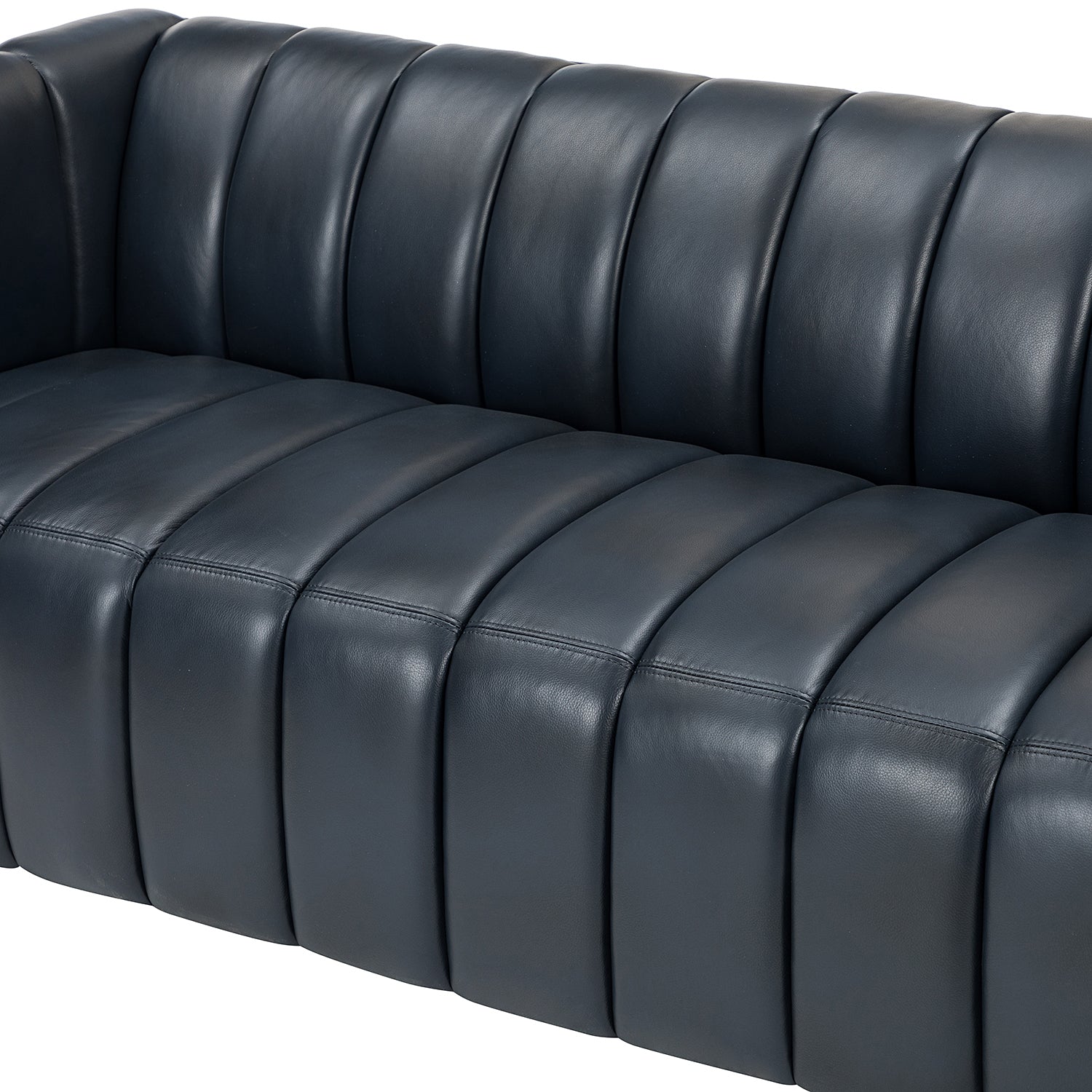 The sleek lines and luxurious fabric of this sofa add flair to your living space. Made of a wooden frame, this sofa features a channel-tufted back and cushions and square arms.