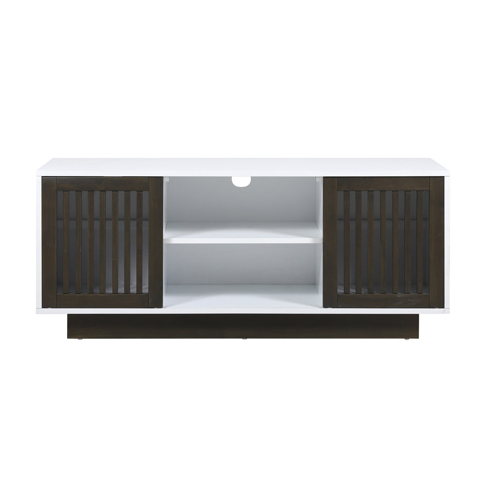 TV Stand with Fluted tempered Glass Doors for TVs Up to 95''
