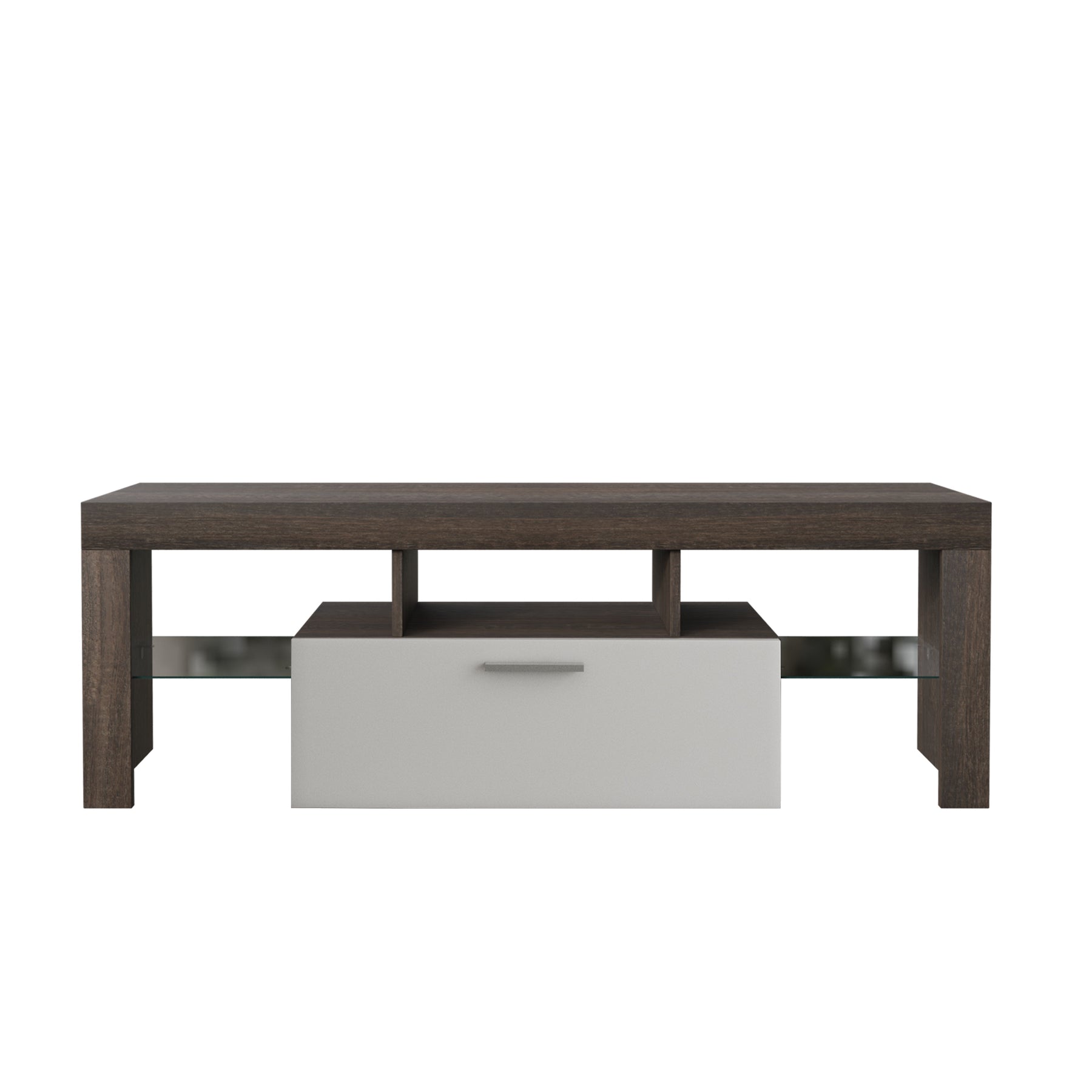 - This TV stand with LED comes with 16 RGB LED BACKLIGHT, 4 LIGHT MODE & BRIGHTNESS ADJUSTMENTS.Equipped with REMOTE CONTROL makes changes of light ever easy.