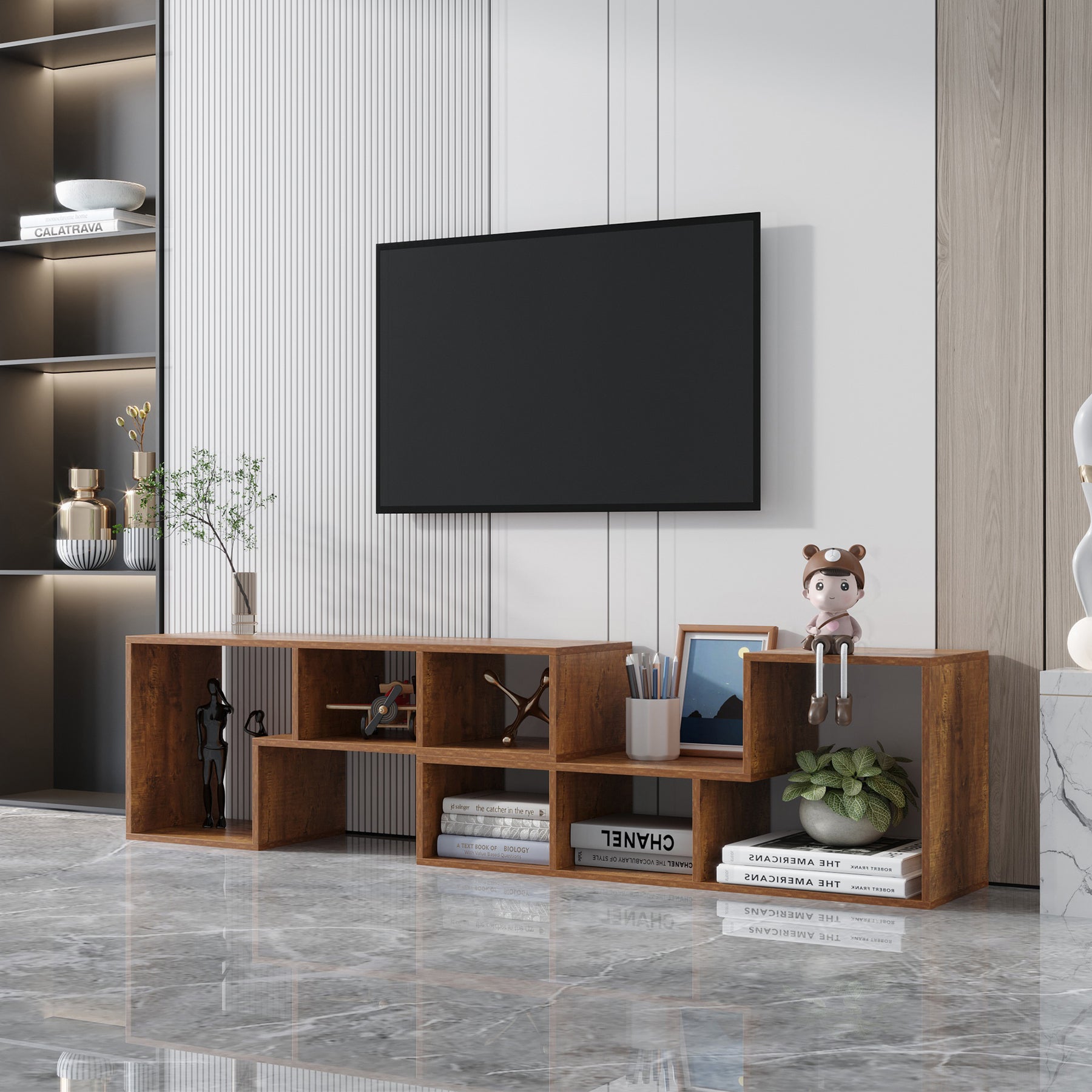 Double L-Shaped TV Stand,Display Shelf,Bookcase for Home Furniture,Walnut