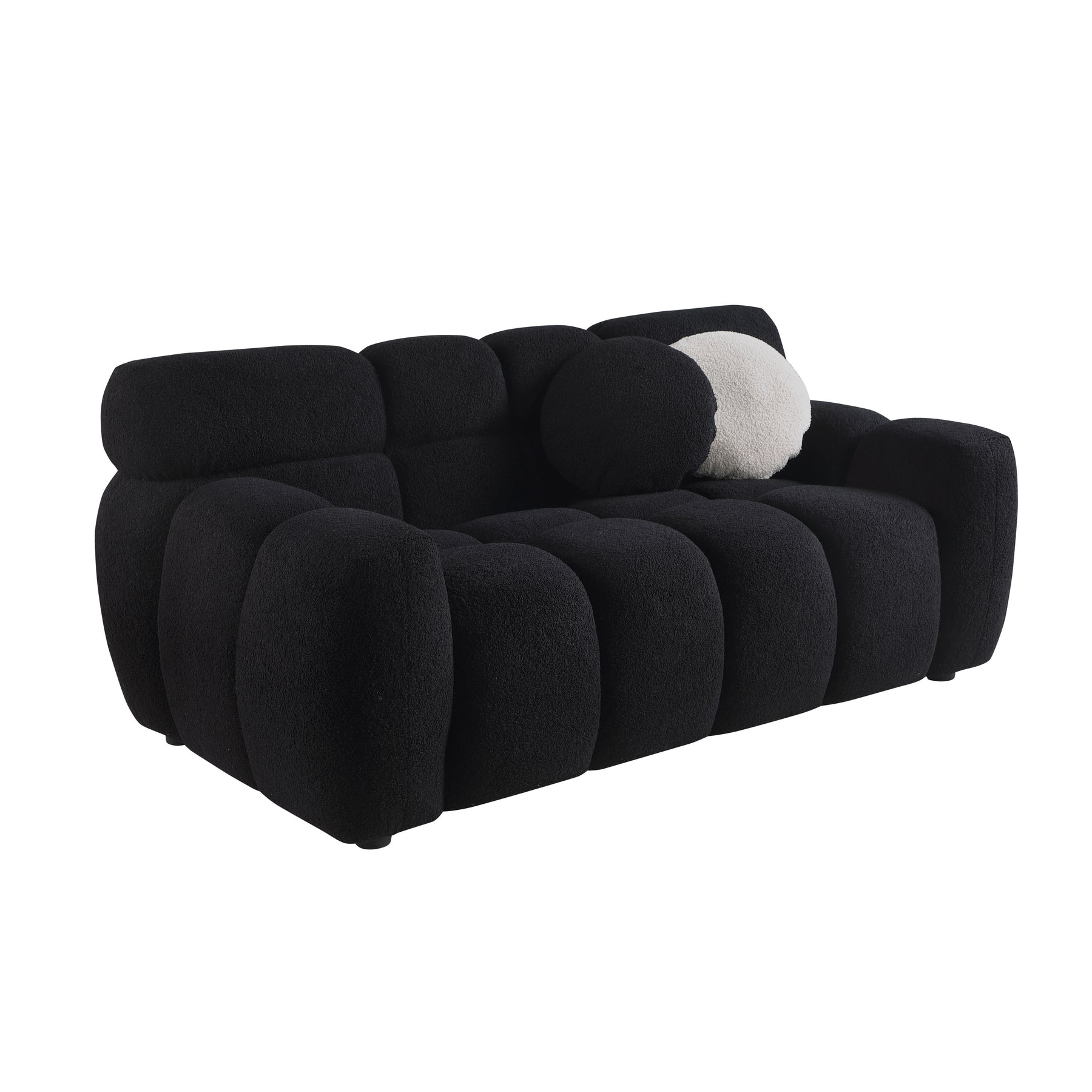- 64.96 length ,35.83" deepth ,human body structure for USA people, marshmallow sofa,boucle sofa black color,3 seatereige
