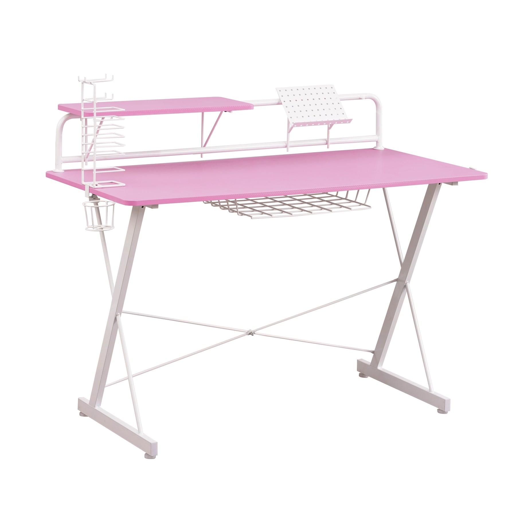 Techni Sport TS-200 Carbon Computer Gaming Desk with Shelving, Pink
