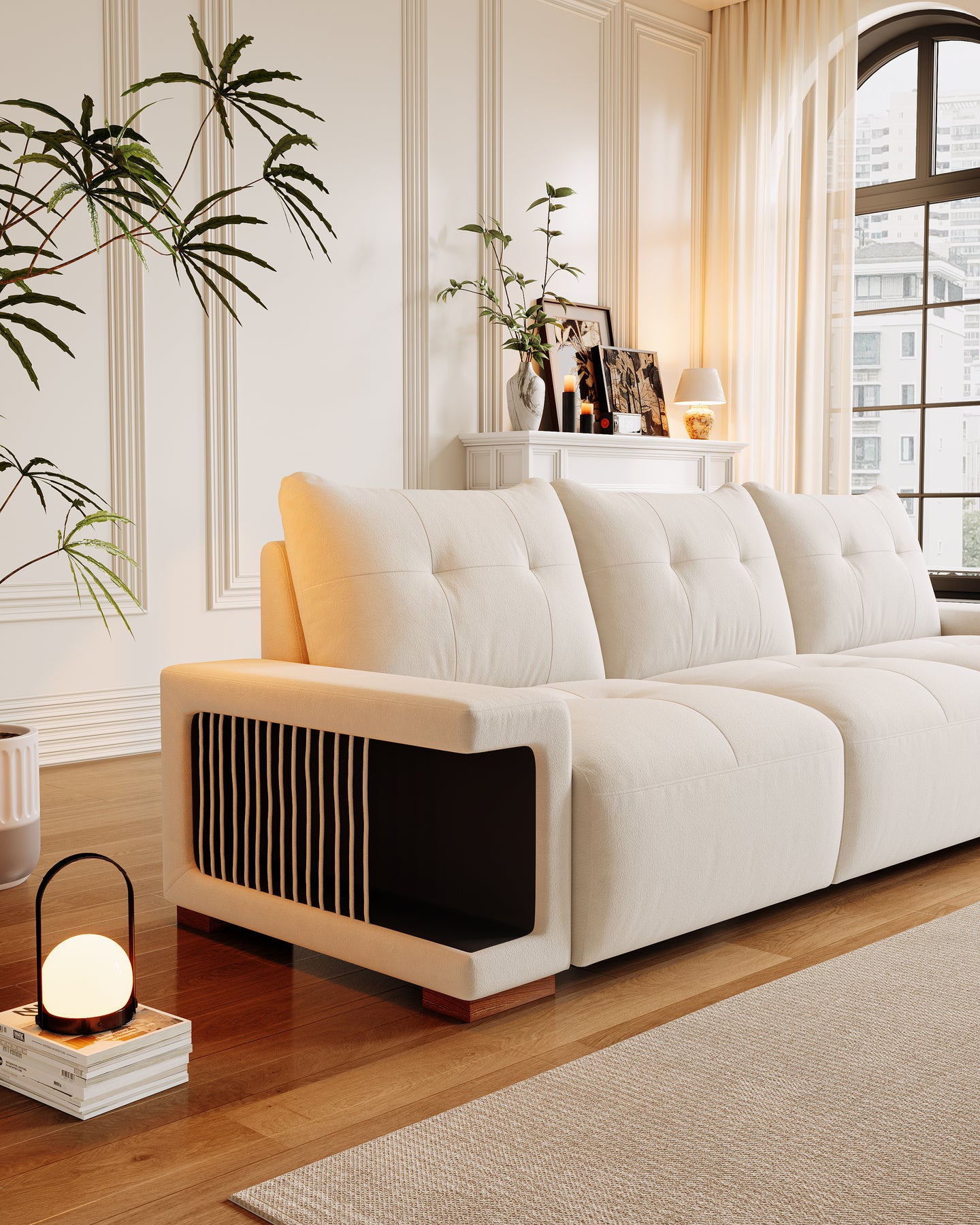 - 【Unique sofa design】 This modern sofa has a unique space under the armrests, allowing your cat and dog to rest inside. When you rest on the sofa, your cat and dog can accompany you together,This 89" small space couch is suitable for apartment,dorm,bedroom,medium and small living room.